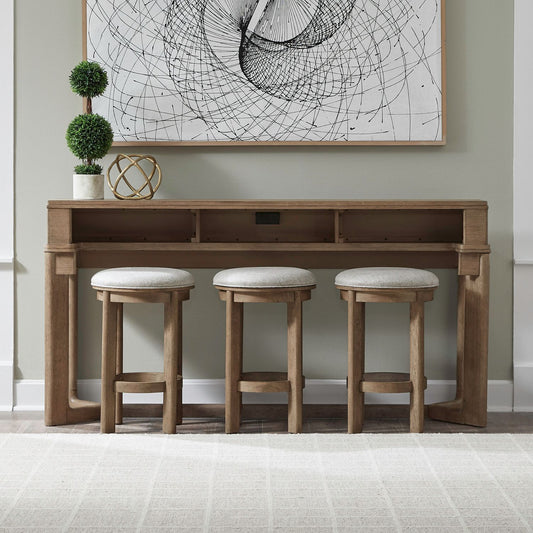 Americana Farmhouse - 4 Piece Console Set (Console 3 Stools) - Light Brown
