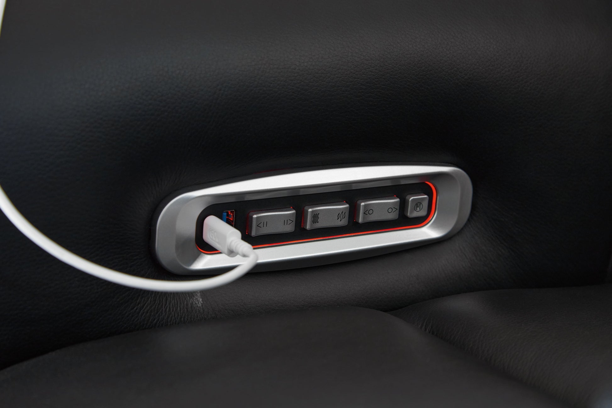 Masterfully blend high style and must-have comfort with this power reclining loveseat. Its clean, transitional look is crafted with luxury in mind, complete with supple top-grain leather in the seating area. Eloquently incorporated into the sleek design are features that take relaxation to the next level, like one-touch reclining, reading lights and wireless charging. Even more indulgent? Heat and massage functions that bring soothing relief from head to toe.