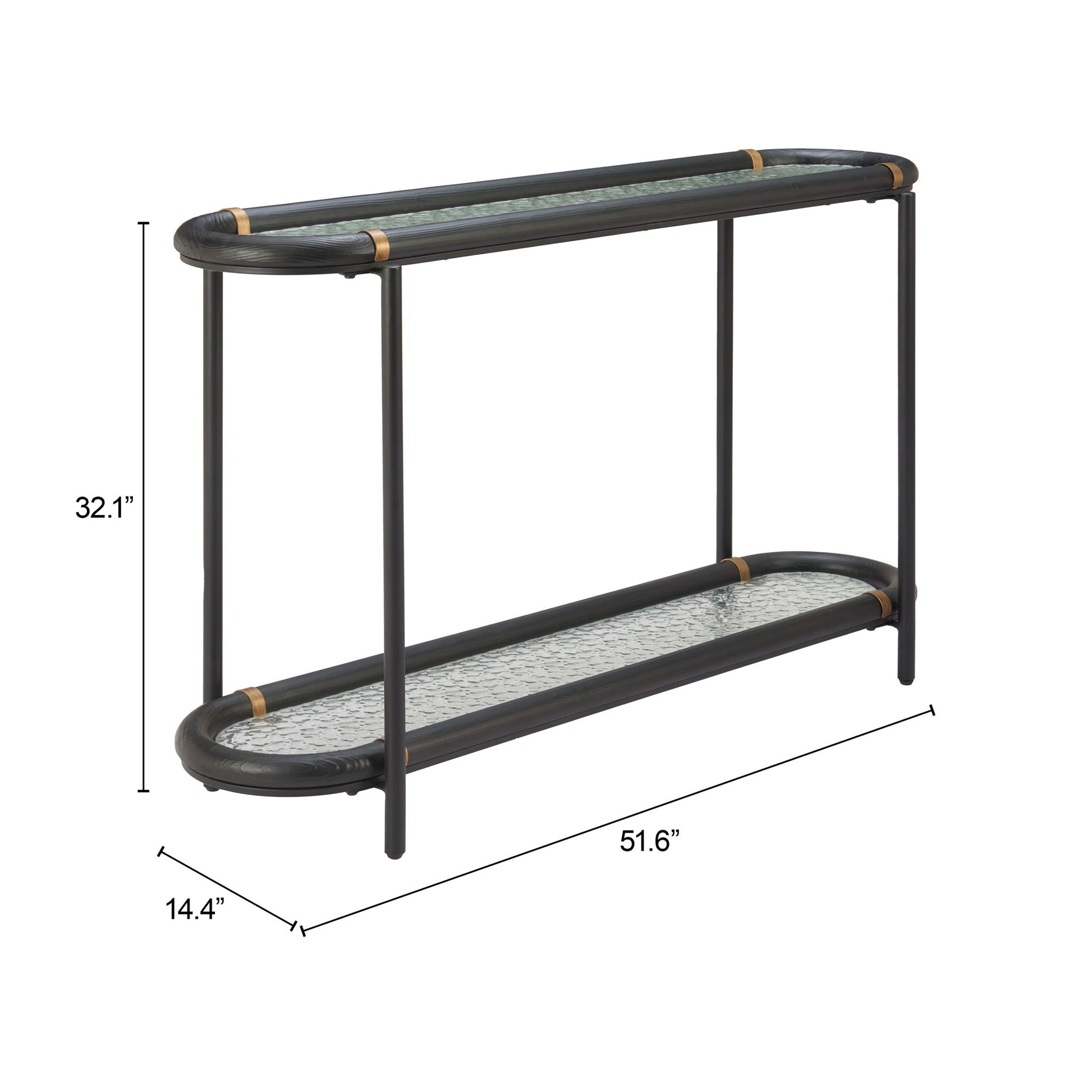 The Aneis Console Table in Black adds a touch of modern elegance to any space. Its black tone and construction from tempered rippled glass, fir wood, and steel make it a standout piece in any room. Ideal for hospitality use, it adapts effortlessly to various settings.