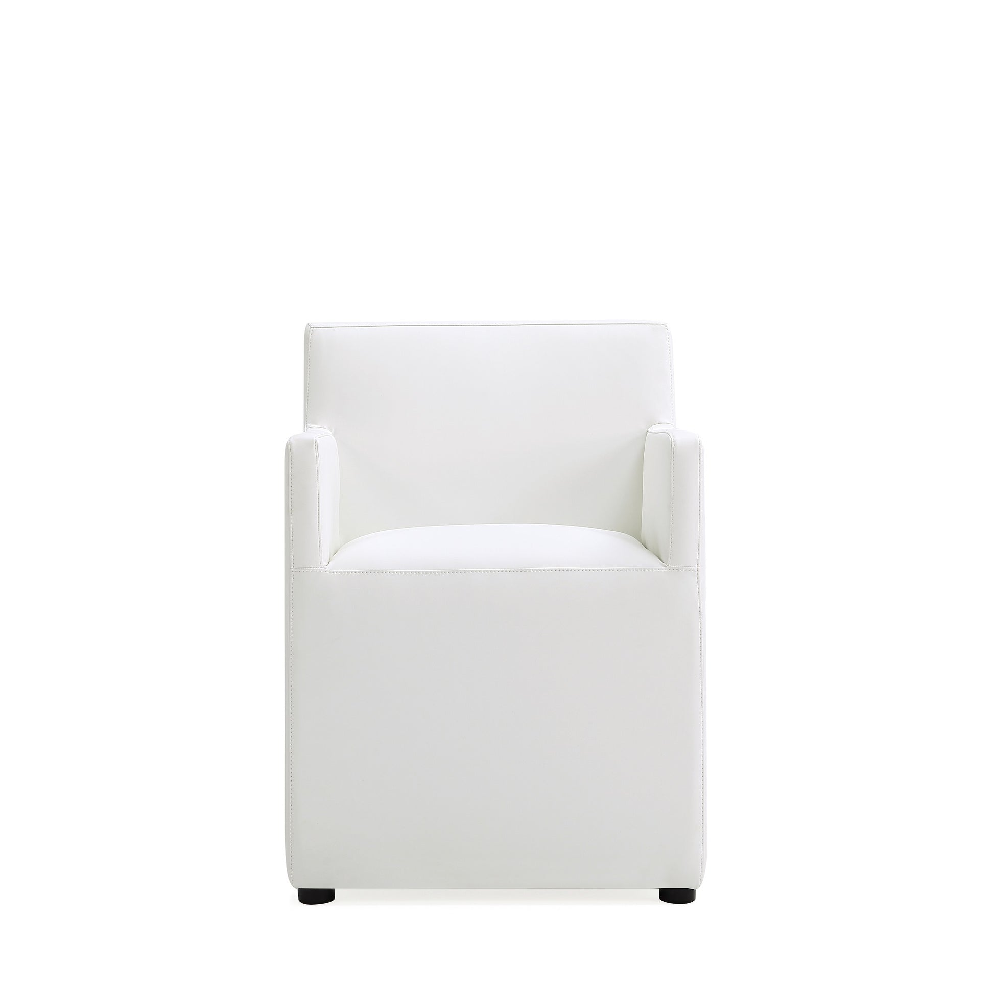 Anna Modern Square Faux Leather Dining Armchair in Cream