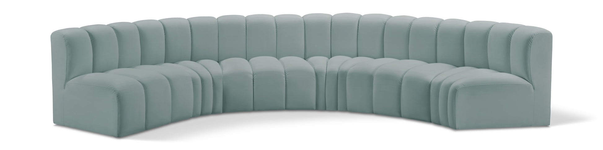 Arc - Faux Leather 6 Piece U-Shaped Modular Sofa - Mint Green