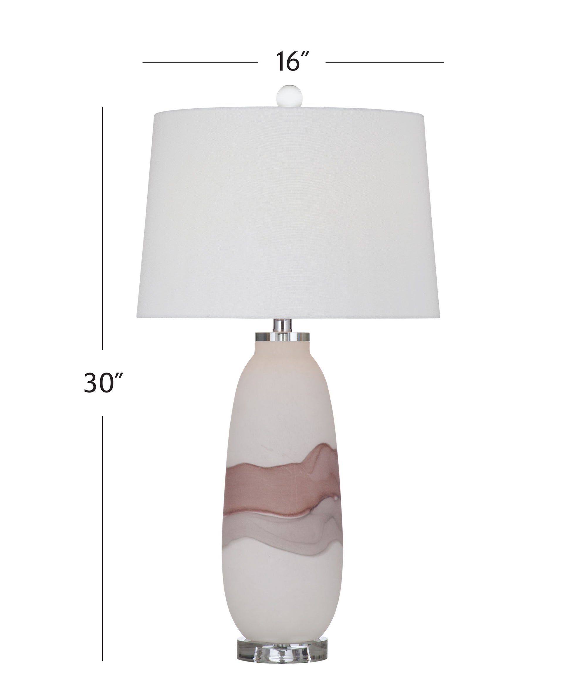 The Benin Table Lamp features an art glass body with a white linen tapered shade. Finished in matte white, mauve, and gray, this lamp harmonizes a palette of subtle and elegant tones. Meticulously crafted with attention to detail, the Benin Table Lamp stands as a refined addition to interior spaces, seamlessly blending enduring elements with a touch of contemporary sophistication. The matte white, mauve, and gray finishes complement the art glass body, creating a visually appealing contrast. With its stylish design and meticulous craftsmanship, the Benin Table Lamp not only adds a modern edge to any room but also provides a soft and inviting illumination, making it a versatile and impactful contribution to interior decor.