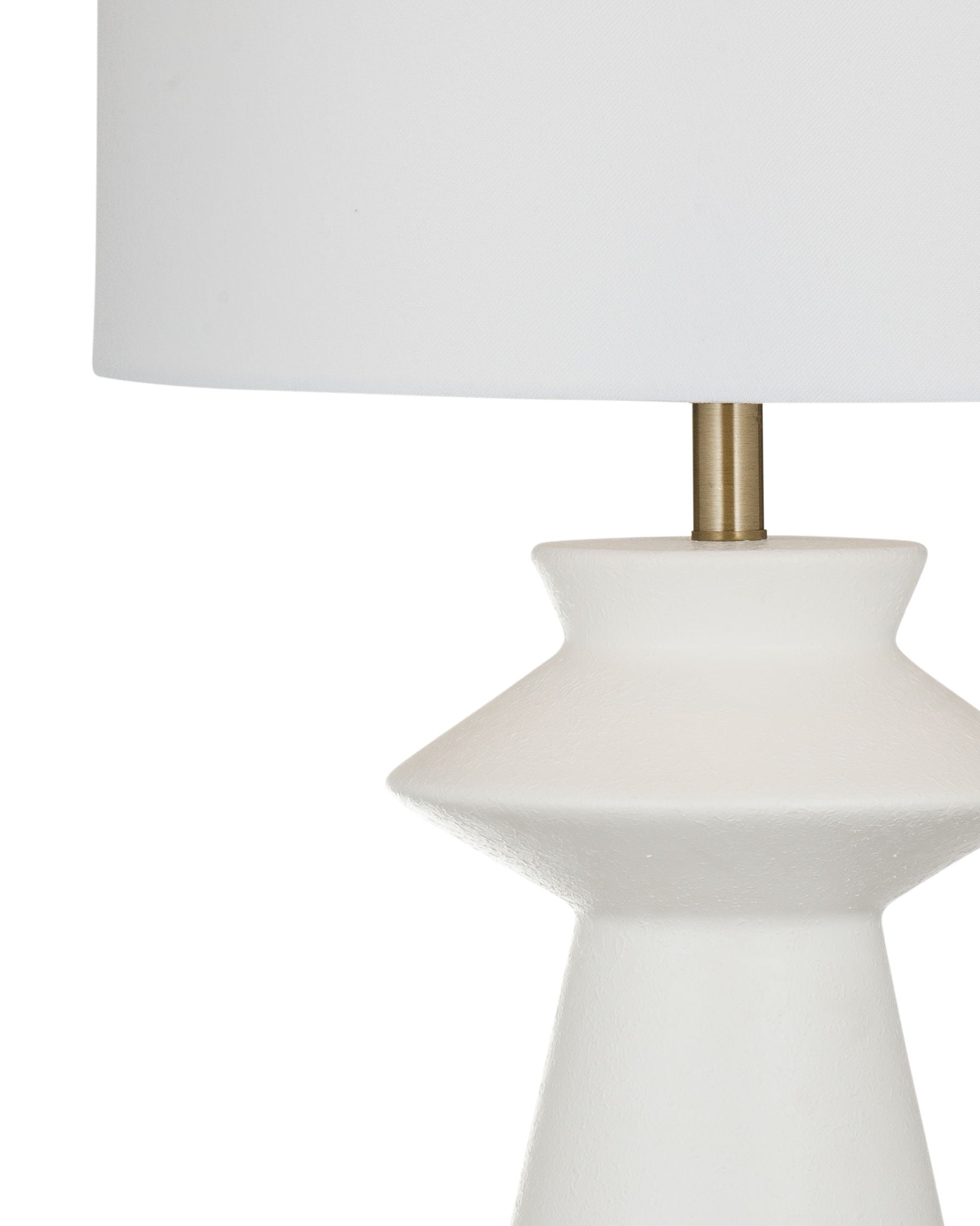 - Sculptural white faux plaster base adds a modern, minimalist touch