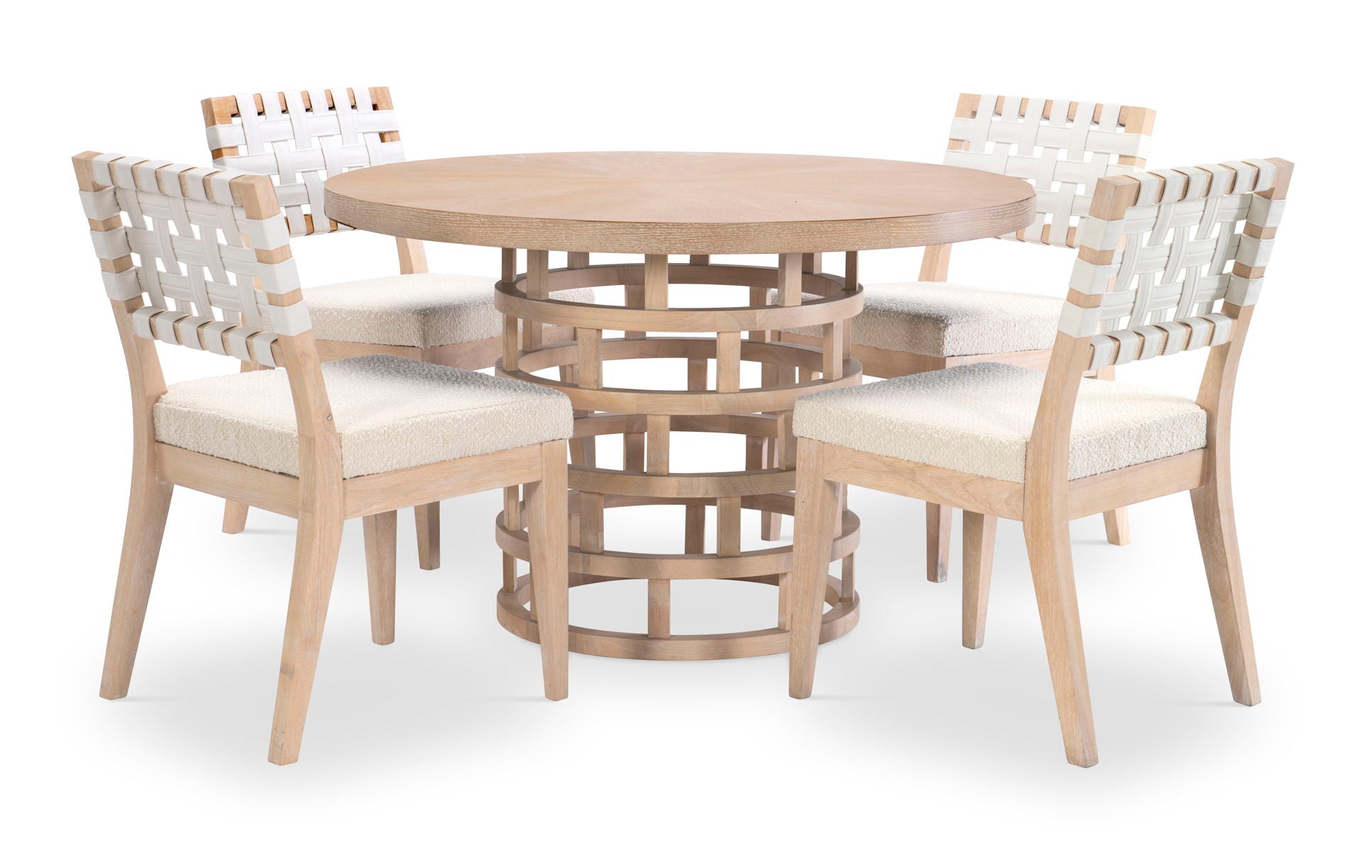 Capture a modern resort feeling with the Biscayne Collection by Legacy Classic - Modern. A light and airy blonde Malabar finish is paired with faux woven raffia,, alabaster doors,, and boucle fabrics for a serene and stylish setting.