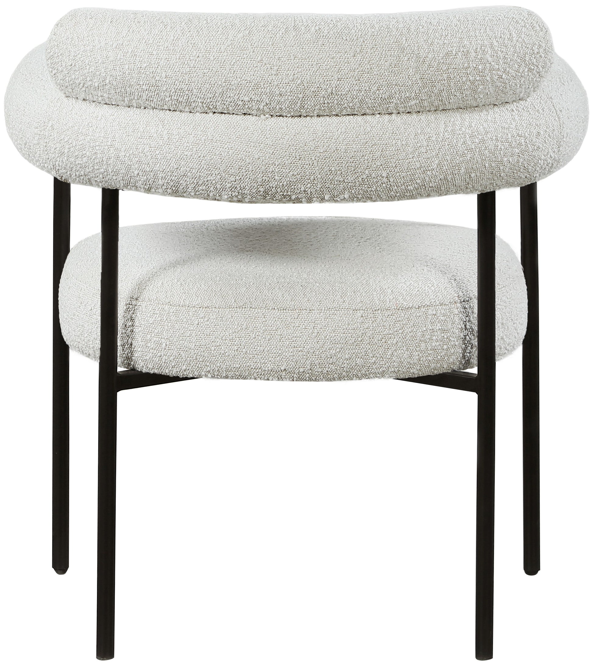 Modernize your dining space with these Blake boucle fabric dining chairs. This pair of contemporary dining chairs features rich boucle fabric, making them comfortable to sit on. Their matte metal frames provide sturdy support so you can relax knowing they ll seat you for years to come. Built to last, these chairs are strong enough for most users. Pair these pretty chairs with your choice of dining table for a custom look.