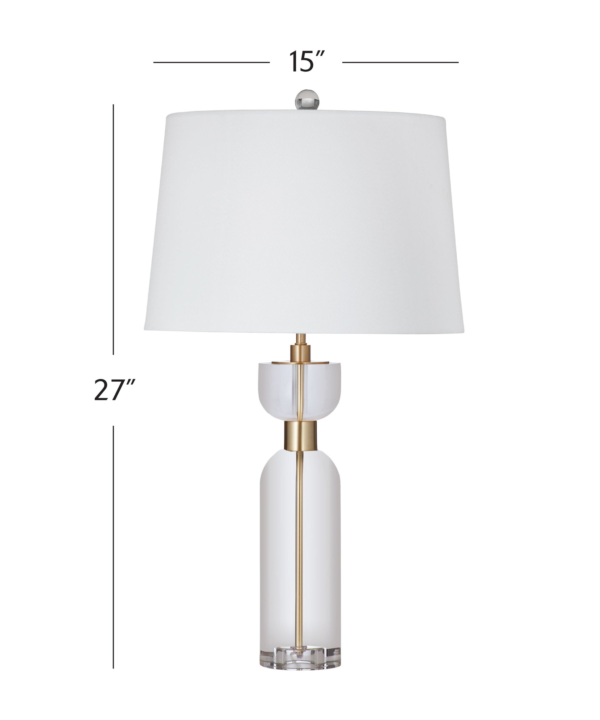 The Bollin Table Lamp combines a crystal and brass base, offering a perfect balance of modern elegance and refined style. The sleek design adds sophistication to any room, while the white tapered drum shade softens the light, creating a warm, inviting atmosphere. This lamp's timeless appeal fits seamlessly into a variety of interiors, enhancing your space with both function and beauty. The Bollin Table Lamp is a versatile piece that brings contemporary charm to your home decor.