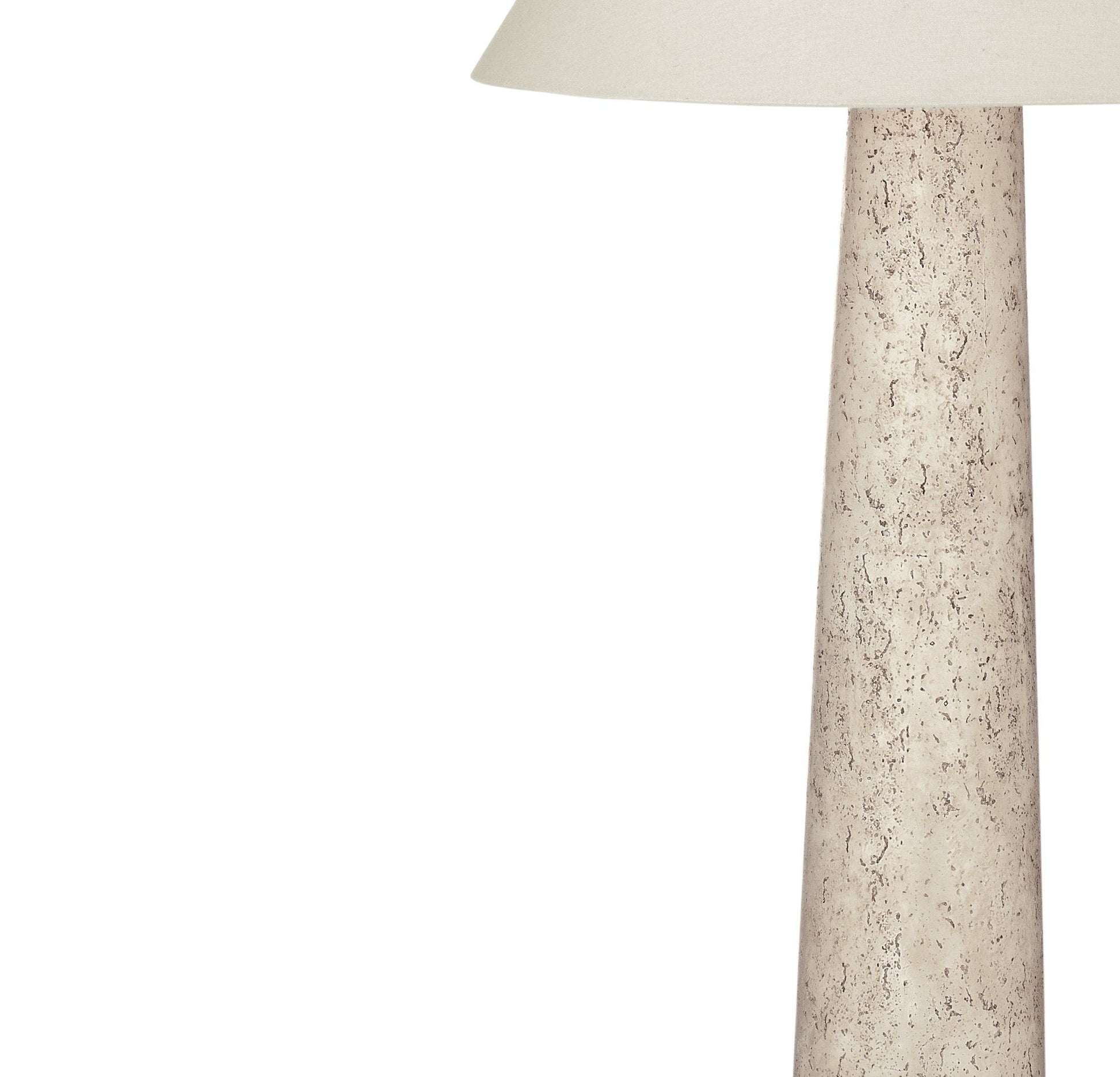 The Butler Floor Lamp is a stylish addition to any space, crafted from durable resin in a textured cream finish. Its tapered drum shade complements its modern design, while also adding a touch of elegance to the room. With its midcentury aesthetics, this lamp brings a timeless charm that effortlessly enhances your decor. Illuminate your living space with soft, inviting light, creating a cozy ambiance for relaxation or entertaining. Trust in the Butler floor lamp to combine functionality with sophisticated style, making it a versatile and reliable lighting solution for your home.