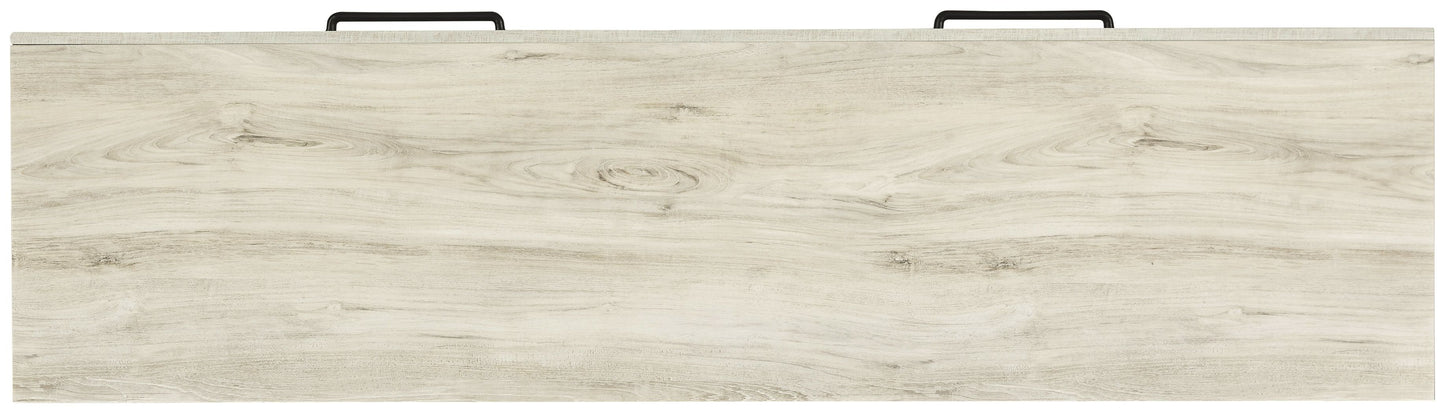 Wispy white finish over replicated Oak grain with authentic touch. Large scaled dark colored handles. Cases feature a framed front and pilasters. All panel headboards (53,57,58,87) feature decorative matte black sconce lights. Side roller glides for smooth operating drawers. All panel headboards (53,57,58,87) can attach to a bolt-on metal bed frame B100-31 or B100-66 respectively. Drawers lined with a faux linen laminate for a clean, finished look. Slim profile dual USB chargers located on the back of the night stand top and the side of the headboards. All side storage options (50,150,60,160) requires the use of the B100-11, B100-12, B100-13 or the B100-14 roll slats. All under bed storage units (50,150,60,160) accommodates to 11"W x 11"D x 11"H cube storage bins. All beds have a panel footboard (52,84,54,56) and storage footboard option (52S,84S,54S, 56S). Queen (157) and king (158) upholstered panel headboards feature double upholstered pads with small nail tack details. Panel headboards (53,57,58,87) can attach to a bolt-on metal bed frame B100-31 or B100-66 respectively. Queen (157) and king (158) gray upholstered panel headboards are compatible with existing underbed storage options and footboards. Safety is a top priority, clothing storage units are designed to meet the most current standard for stability, ASTM F 2057 (ASTM International). Drawers extend out to accommodate maximum access to drawer interior while maintaining safety.