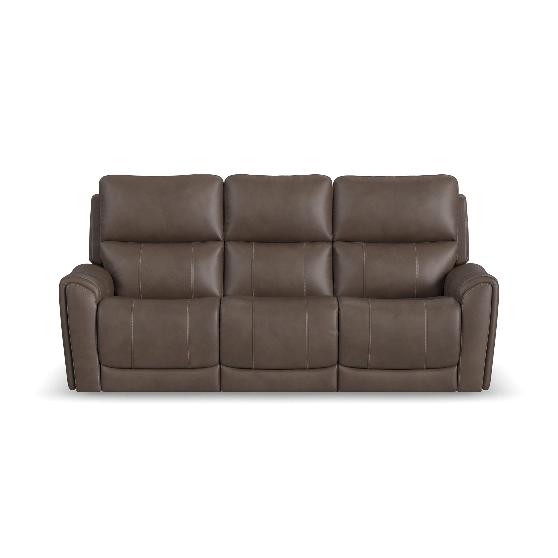 Power up and enjoy secretive perks with the Carter power reclining sofa. Customize your comfort with adjustable recline, headrest and lumbar support on each end seat, including reclining to a Zero Gravity position for a weightless experience, reducing pressure on joints. This sofa will be a statement in your home with its genuine leather look that is a durable, easy to clean fabric in a cappuccino brown color, and Flexsteel's patented Blue Steel Spring™ at the heart of each seat for ultimate durability. Flared arms, a contoured seats and heavy thread stitching details give it a sleek, yet striking look. And it all comes with discreet storage perks, including pop-out cupholders in the arms and a flip-down center cushion that reveals a storage console, touch lighting and a wireless charging pad.