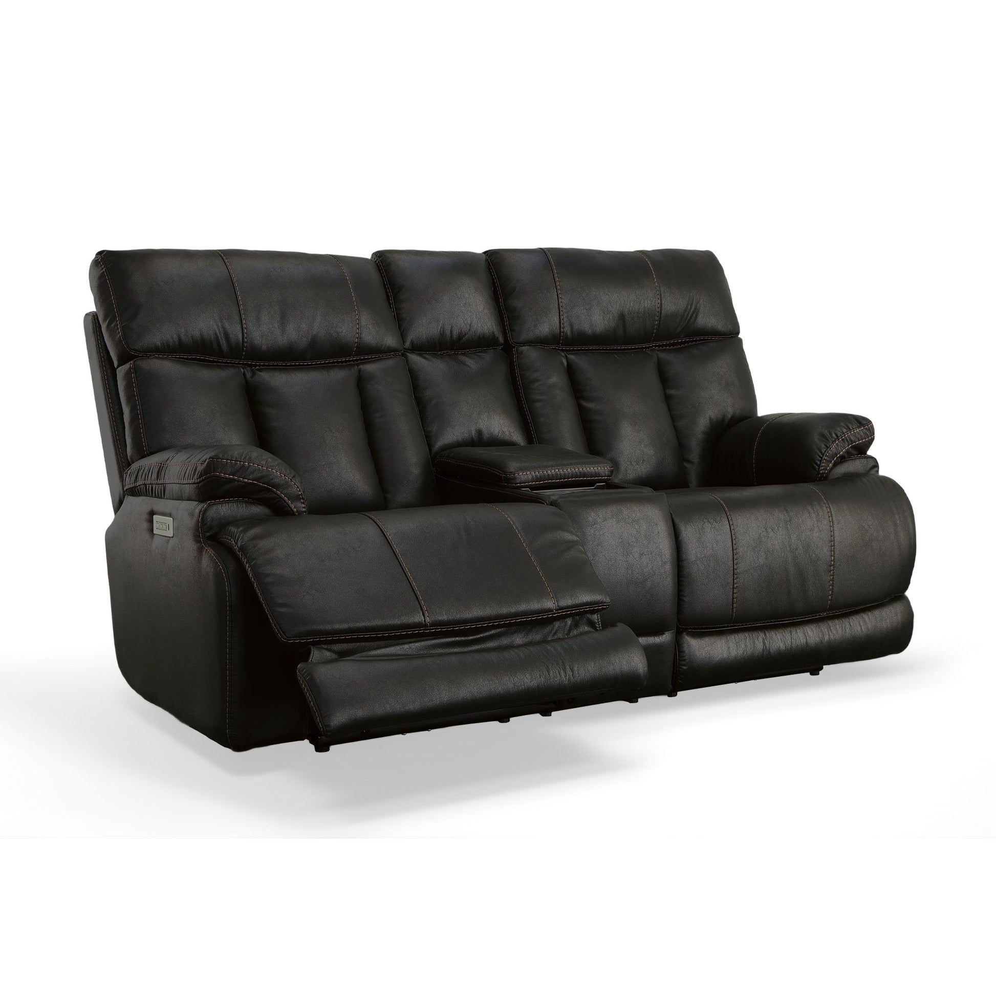 High-End Ergonomic Design Sit comfortably and keep remotes and beverages close at hand with the Clive Power Reclining Loveseat with Console and Power Headrests and Lumbar. This high-comfort, high-quality loveseat has a distinctive look with pillow pad armrests and contoured seat cushions, along with elegant heavy thread stitching and a channeled back cushion. Sitters can independently adjust the headrest, footrest and lumbar support to dial in their ideal level of comfort. Easily shift from sitting to reclining to sleeping with a lay-flat mechanism, and keep your feet and legs elevated with a fully extended footrest that helps improve circulation. With Clive, you get quality that lasts thanks to our DualFlex Spring System. Attached seat and back cushions made from high-density foam ensure a flexible, supportive sit. And with a USB port built into the power control, you can keep devices charged and close at hand. This large-scale, 300-lb capacity recliner is designed to comfortably accommodate a wide range of body types.