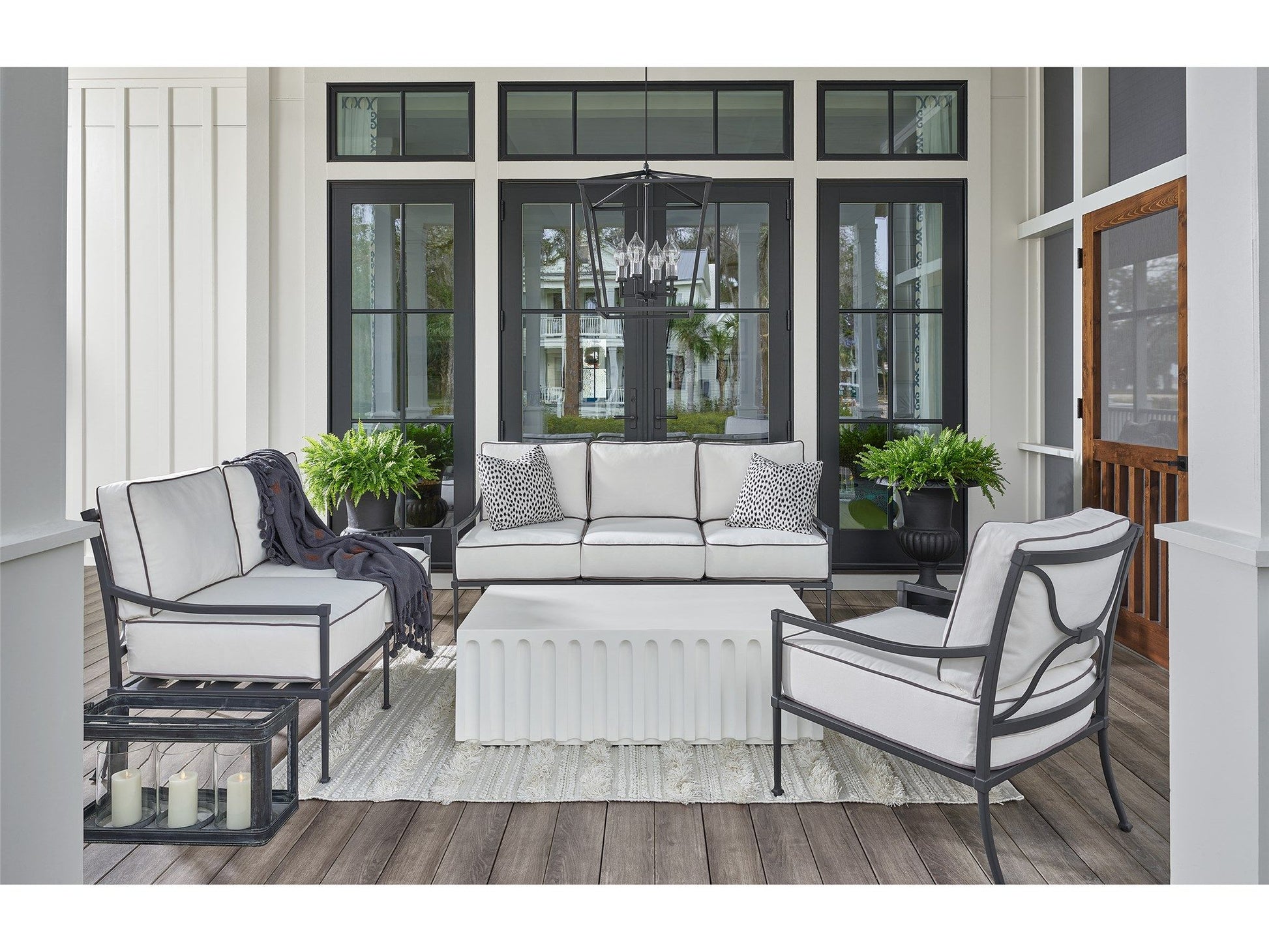 Showcasing contemporary lines and a bright white hue, the Edisto Cocktail Table adds playful panache to outdoor spaces.