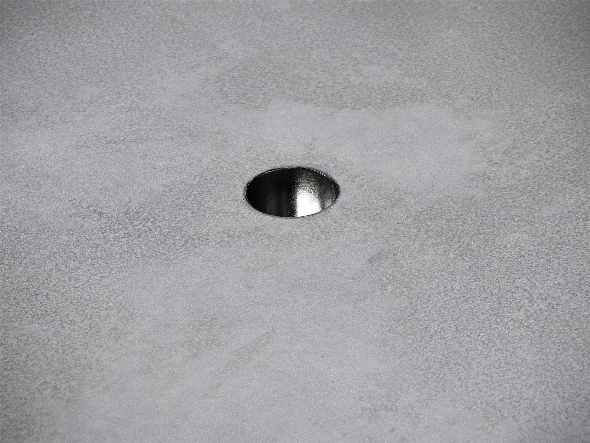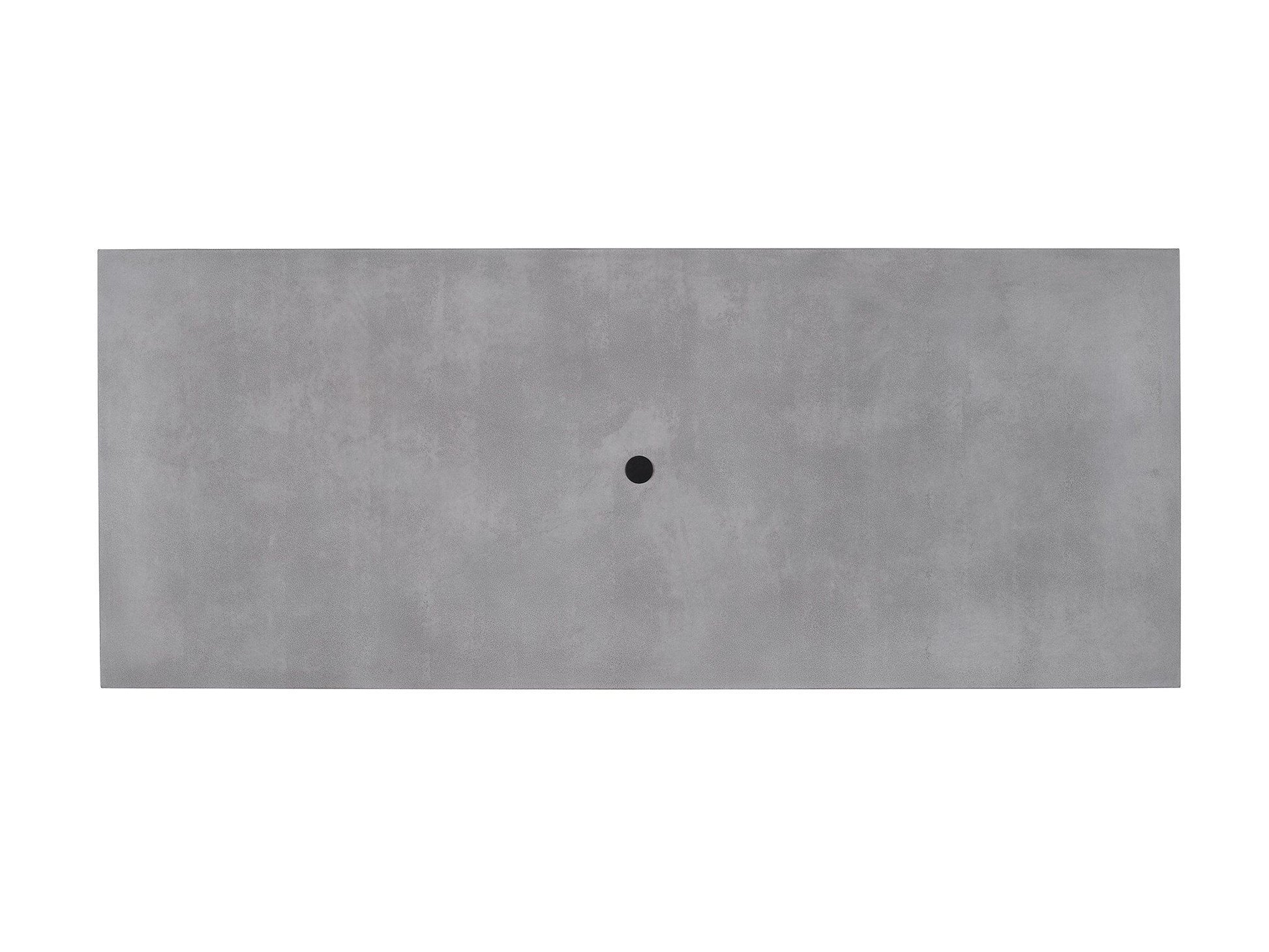 A large cast concrete top is accentuated by a sleek metal base in the South Beach Dining Table, a breezy statement piece with a modern silhouette.