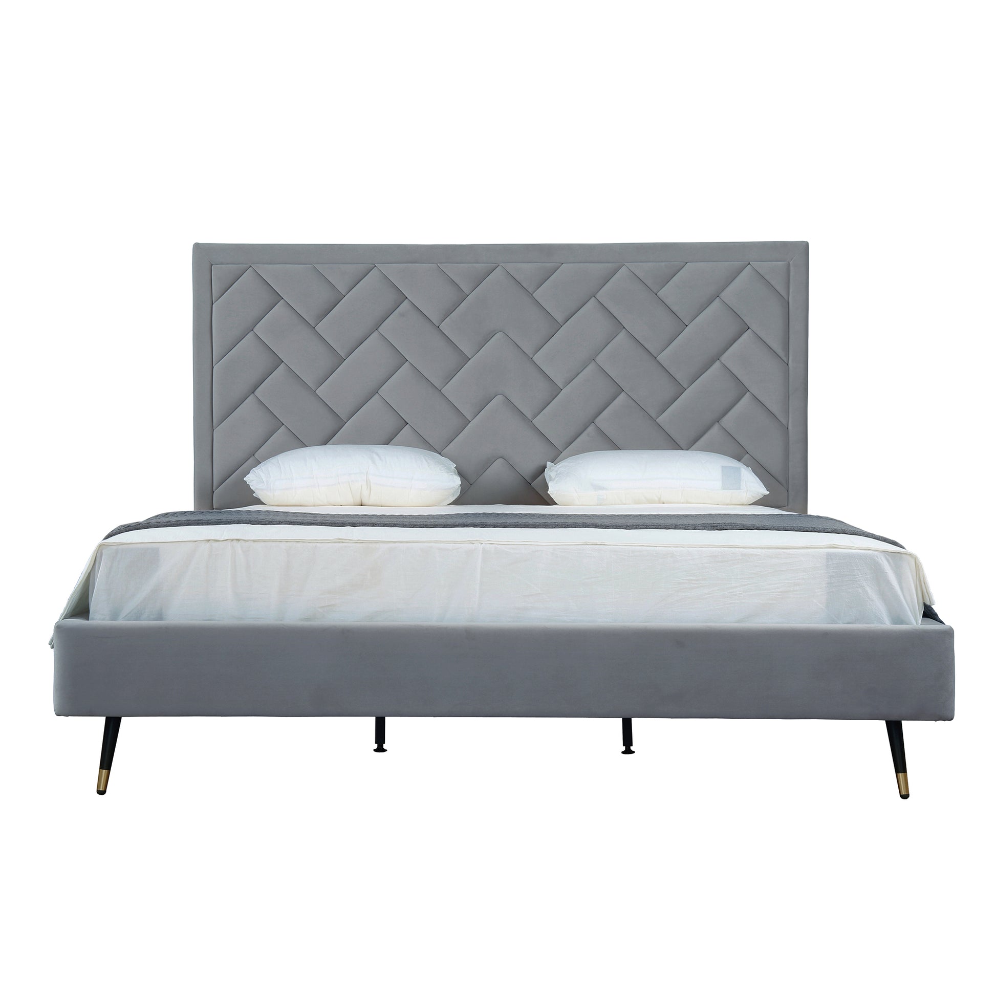 81.5 in. Depth * Upholstered In Luxurious Velvet with High Density Foam Filled Padding. * Features a Chevron Style Weave Stitched Headboard. * Recommended King Mattress Size: 80 in. * 76 in. * Metal Leg Height: 7.9 in. Headboard Height: 43 in. * No Box Spring Needed! Solid Pine Wood Slats Included. * Minimal Home Assembly Required. All Hardware Included