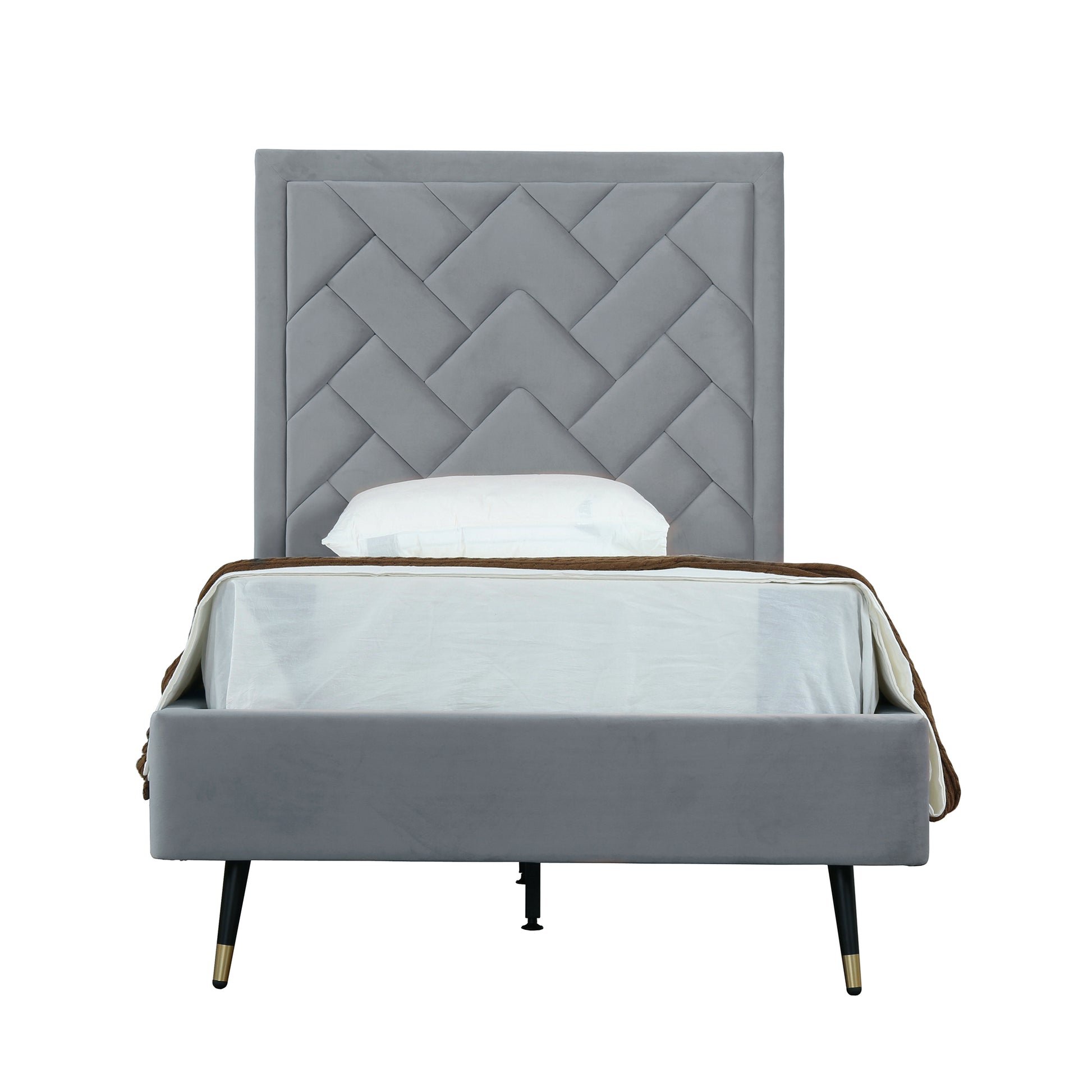 44.5 in. Depth * Upholstered In Luxurious Velvet with High Density Foam Filled Padding. * Features a Chevron Style Weave Stitched Headboard. * Recommended Twin Mattress Size: 75 in. * 39 in. * Metal Leg Height: 7.9 in. Headboard Height: 43 in. * No Box Spring Needed! Solid Pine Wood Slats Included. * Minimal Home Assembly Required. All Hardware Included