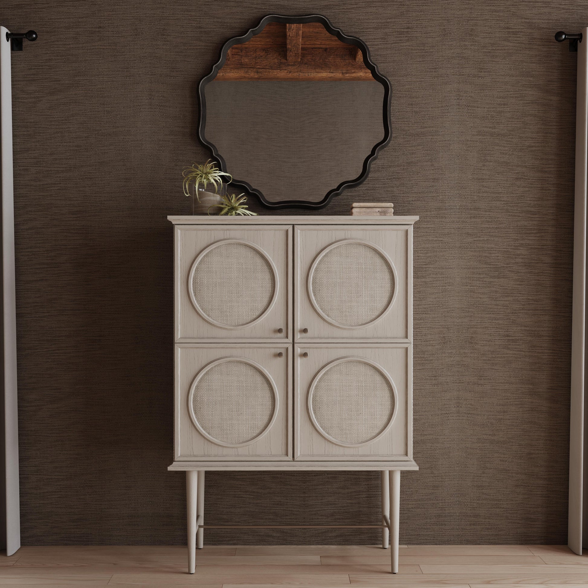 The Davenport Wall Mirror showcases a scalloped frame with a sleek gray finish, adding a touch of simple yet elegant charm to any space. Designed to seamlessly complement surrounding decor, it embodies contemporary style effortlessly.The Davenport Wall Mirror effortlessly combines modern design with timeless elegance, making it a versatile addition to any home.