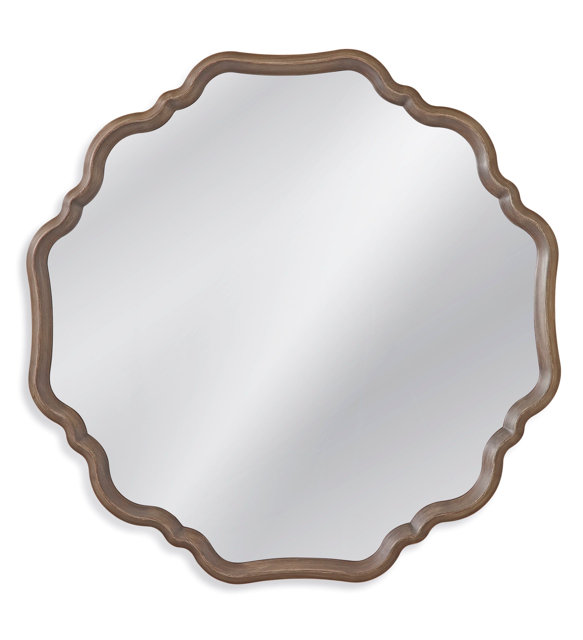 - Scalloped frame with gray finish.