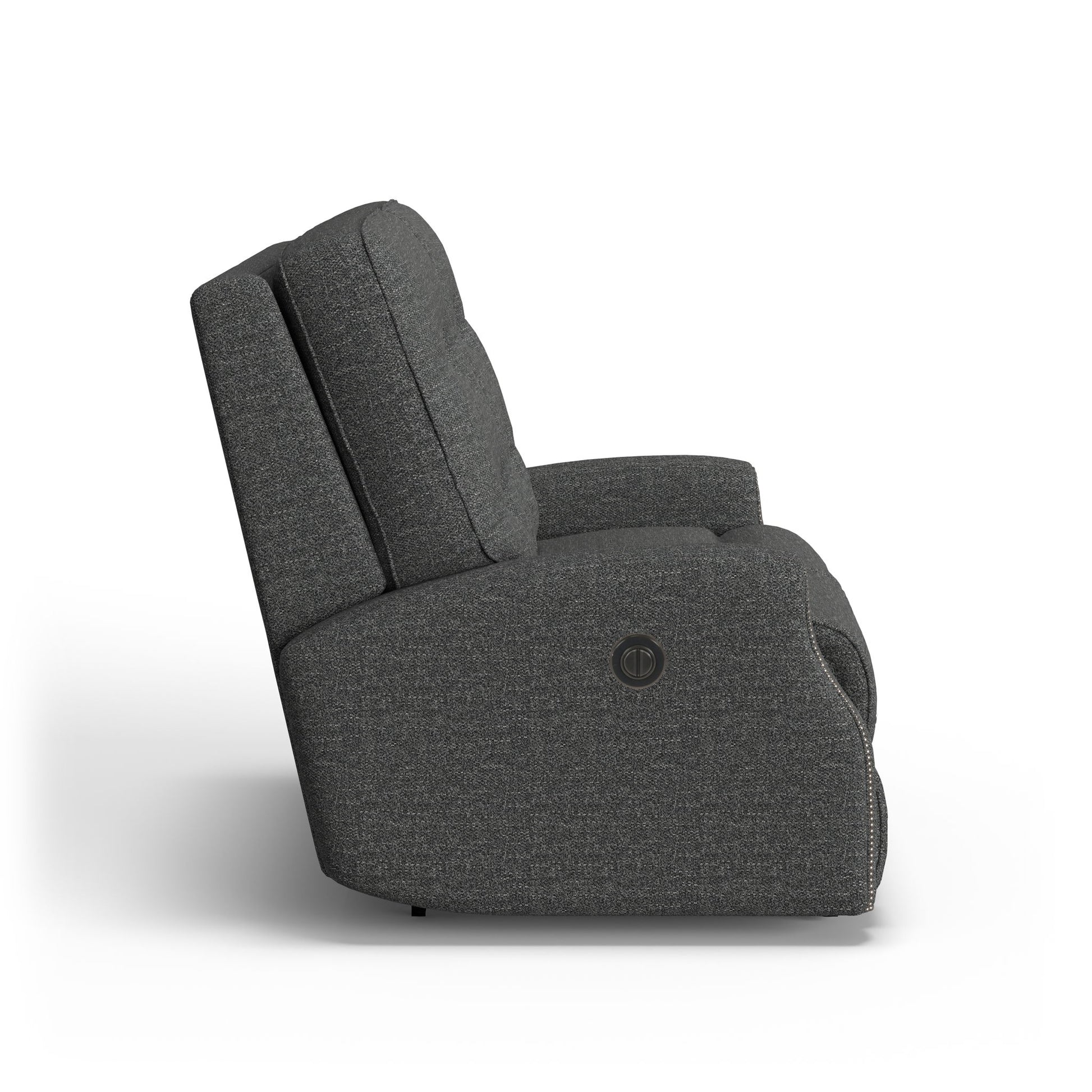 The most handsome seat in the house. Devons profile includes puckered stitching and a tufted back, which provides contrast and style while delivering extreme comfort and relaxation. Feel content while you lean back and rest your feet on the fully padded footrest. Nailhead trim outlines the front of the arms adding flair to its traditional design. A power reclining mechanism lets you change angles effortlessly from an upright to a fully reclined position with the touch of a button.