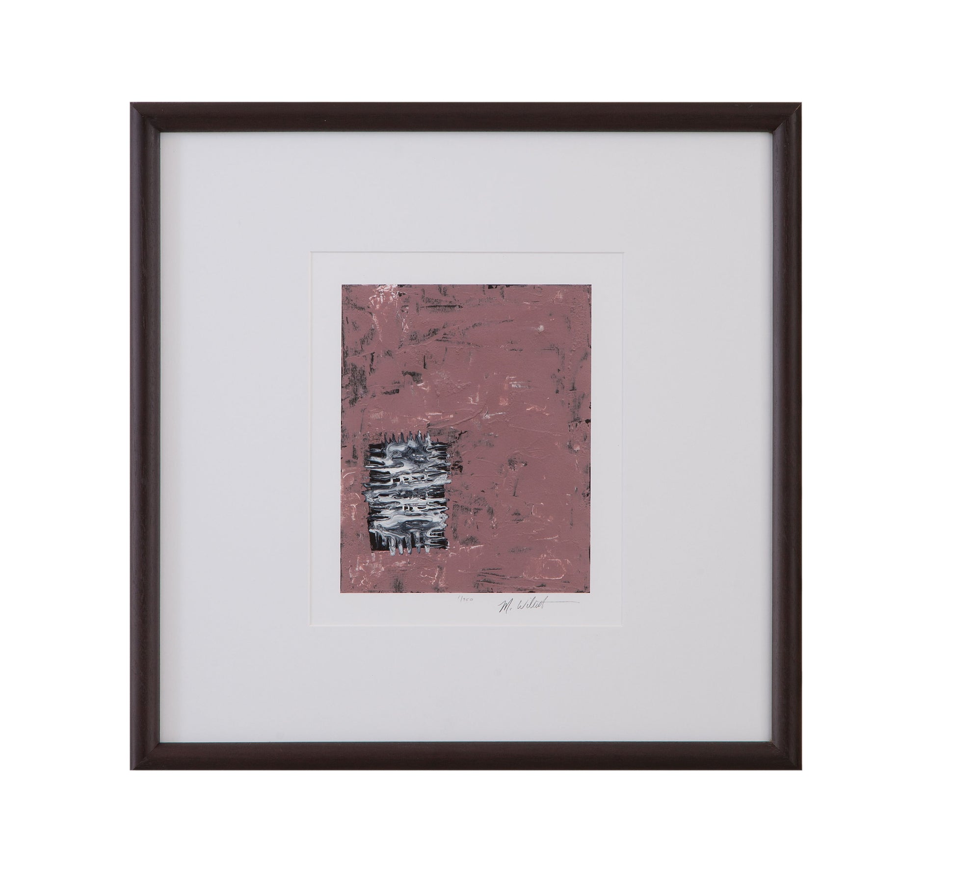 Dual Dichotomy I is a limited edition print, signed and numbered by the artist and printed on fine art cotton rag paper. The print is framed in a 1" brown woodtone frame with a white matboard.