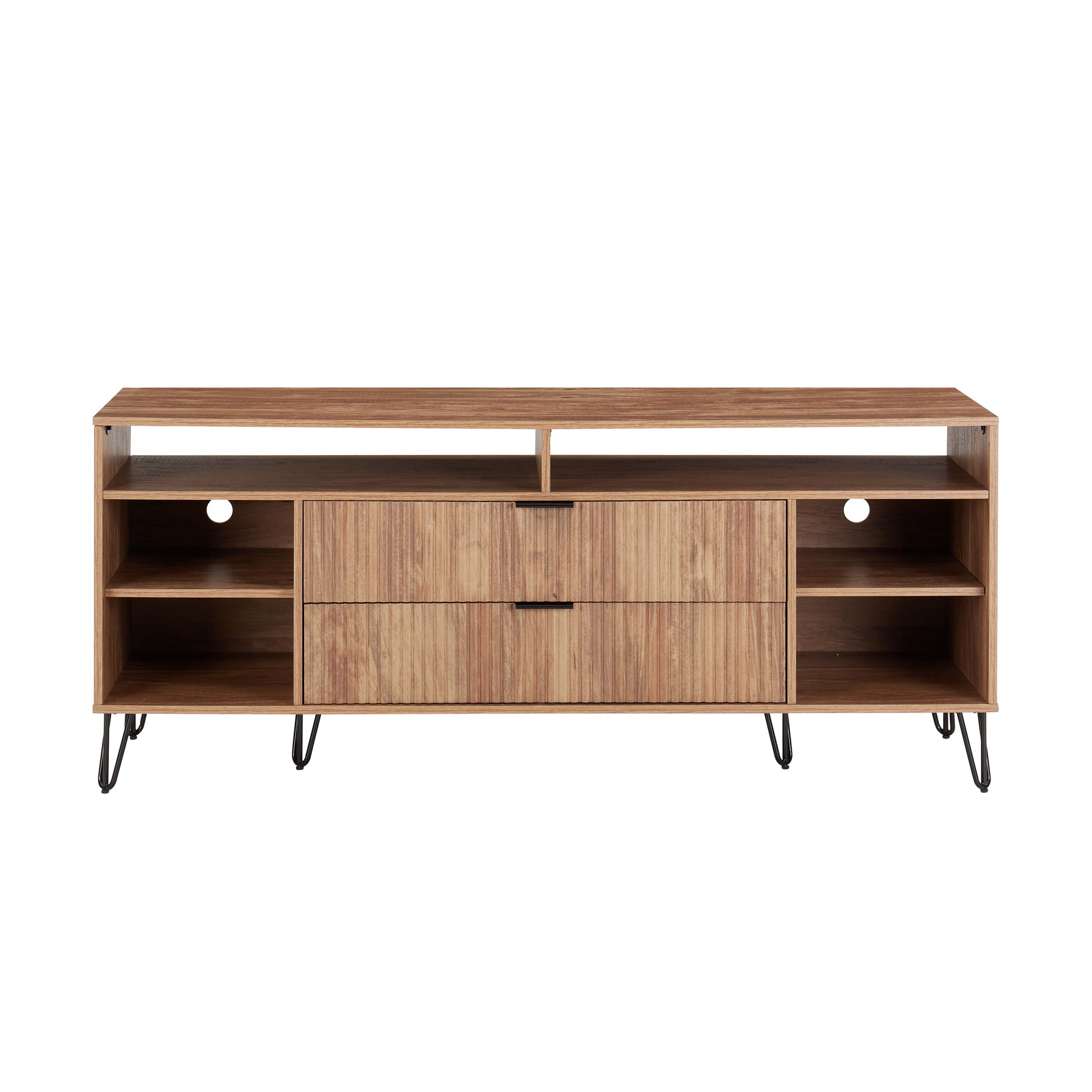 DUMBO 63" Mid-Century Modern TV Stand with 6 Shelves and 2 Drawers in Golden Brown
