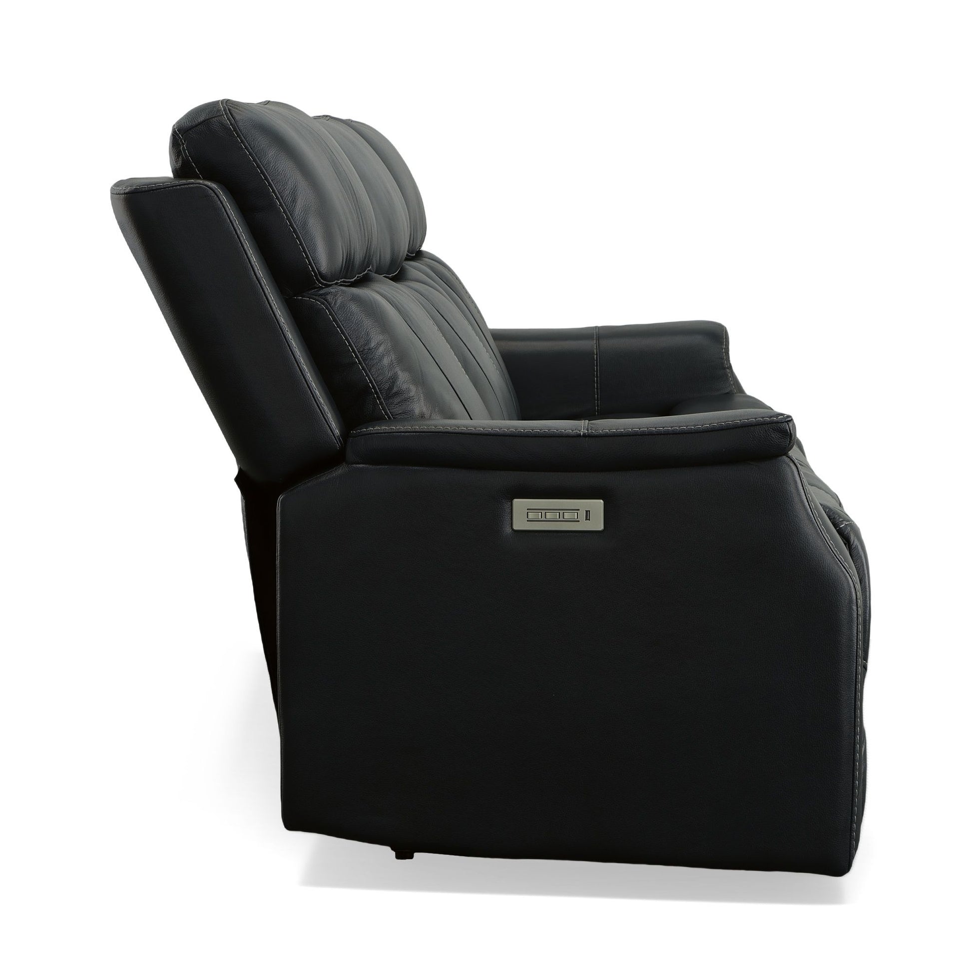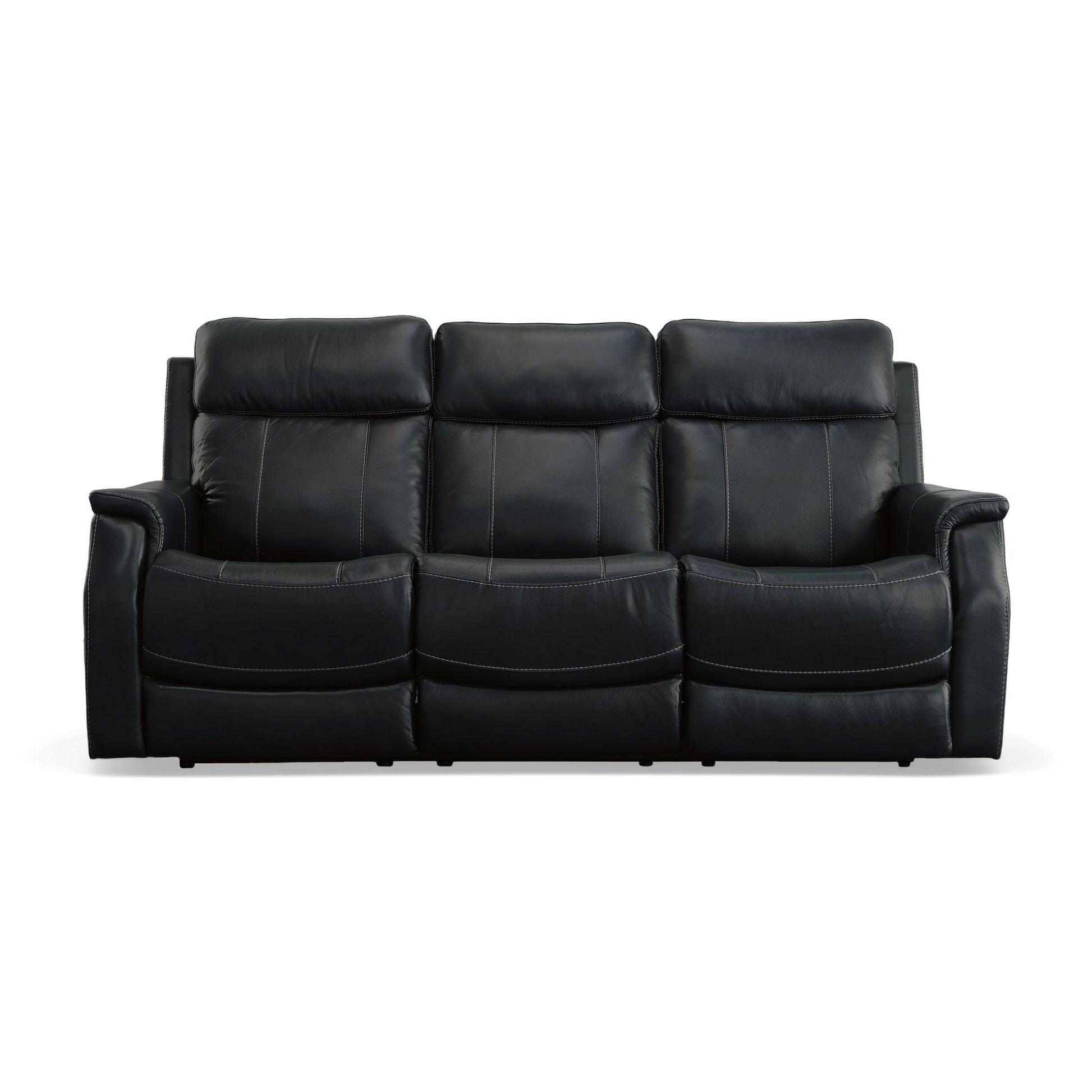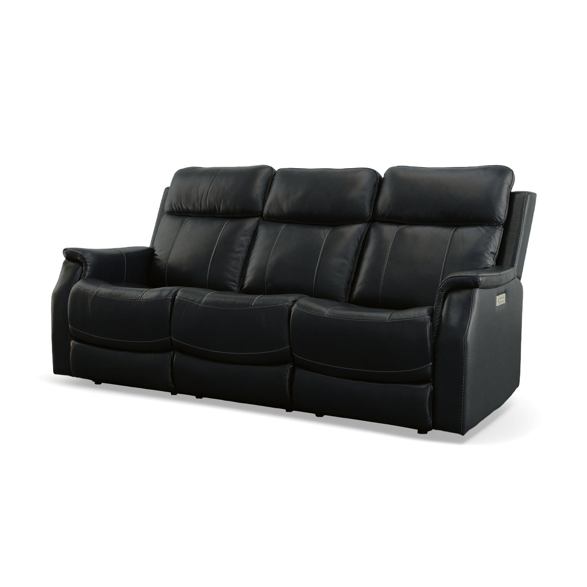 Create a comfy, supportive space for the family to gather with the Easton power reclining sofa with power headrests and lumbar. This plush, yet refined style features a high-divide back, padded track arms, and high-quality, deep blue leather upholstery. Customize your comfort with a power button that independently adjusts the recline, headrest and lumbar support on the end seats. Outfitted with contoured, high-density foam seat cushions and Flexsteel's patented Blue Steel Spring™ seat system, this sofa is built to stay comfortable and supportive for years to come.