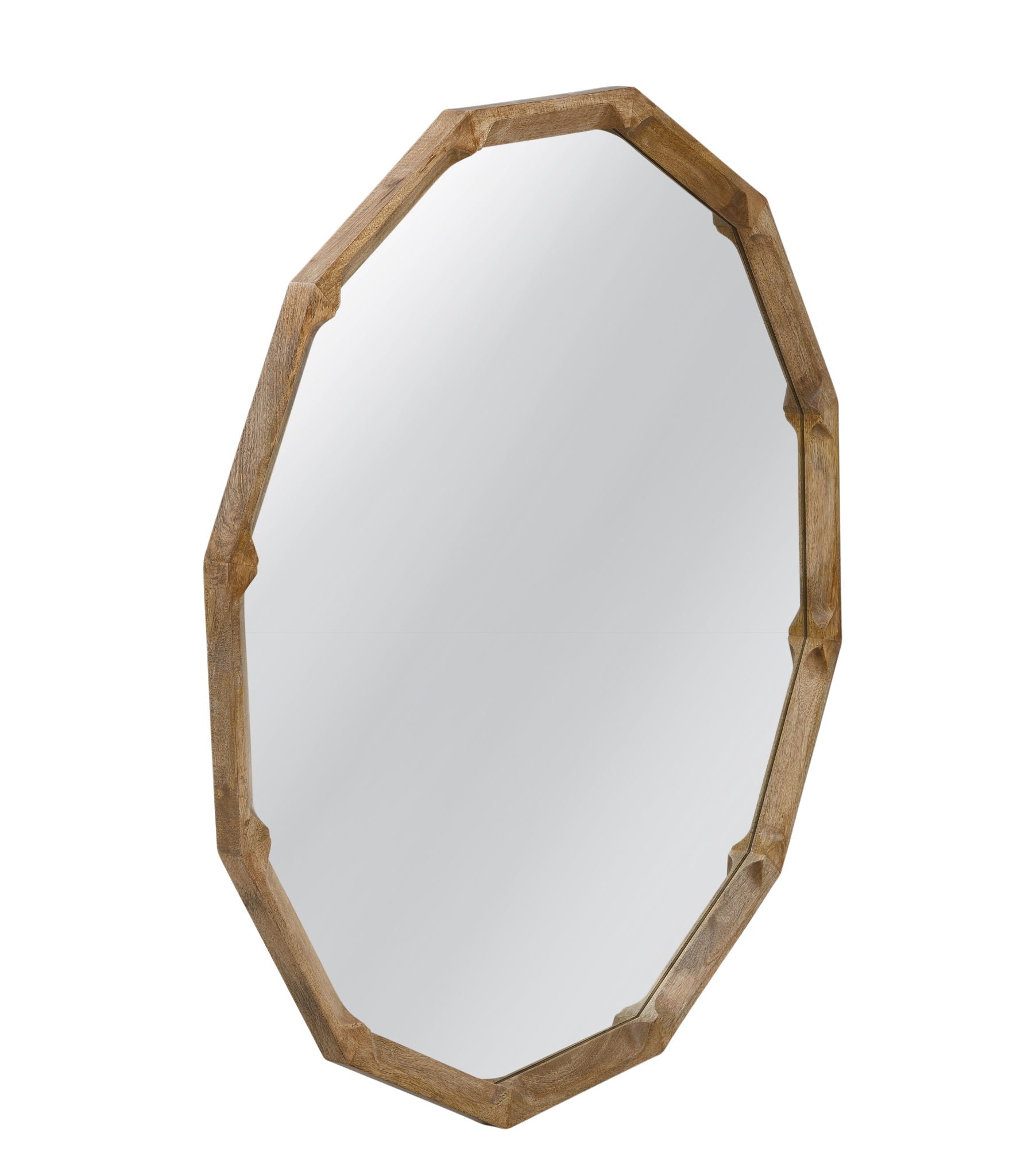 The Eloise Wall Mirror captures a relaxed boho spirit with coastal influences, featuring a warm mango wood frame in a striking octagonal shape. Its natural texture and unique silhouette bring organic charm and modern ease to any room.