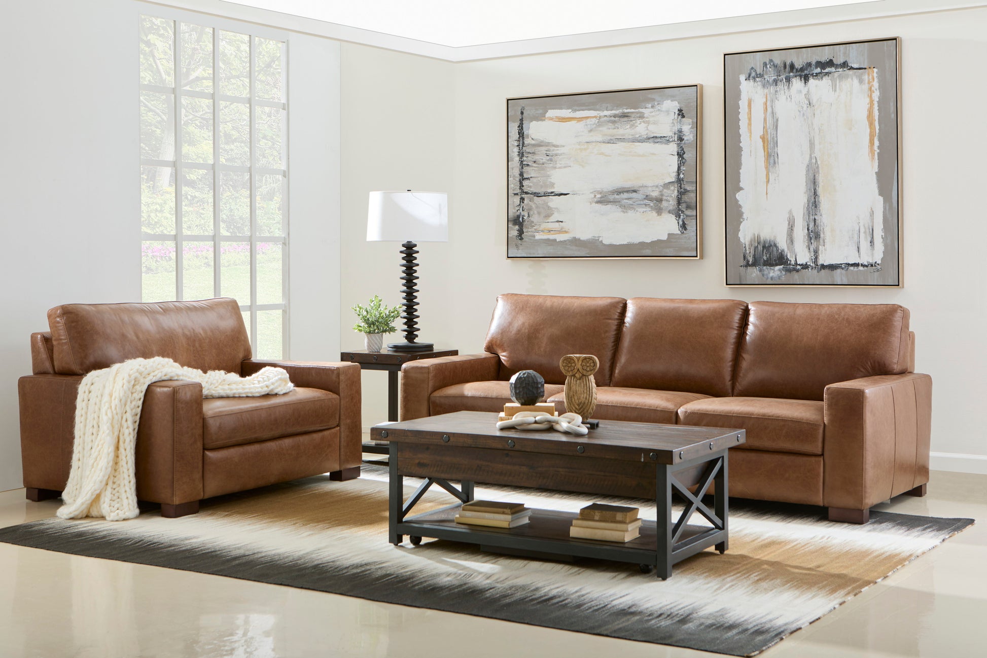 - Fully upholstered in a classic, chestnut top-grain leather that showcases its natural characteristics, the perfect choice for leather enthusiasts