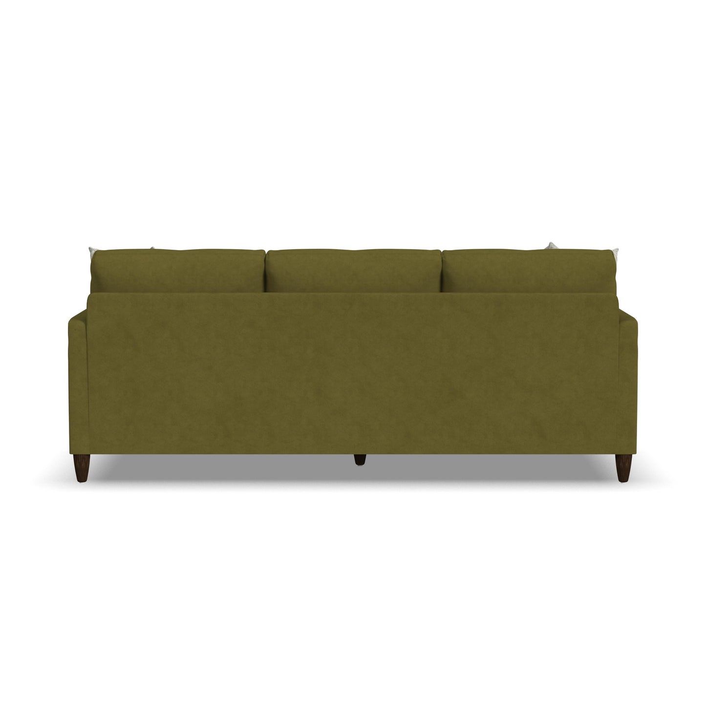 Sweet and Architectural. Clean lines and a cantilevered front make the Fern sofa a welcome addition to any home. With generous seating space from arm to arm, Fern provides plenty of roomy comfort for lounging, relaxing and entertaining. Round tapered legs positioned directly under the narrow track arms offer a distinctively modern architectural feel to spaces. Loose back cushions with a casual pleat design and the included knife-edge accent pillows complete the on-trend look of Fern.