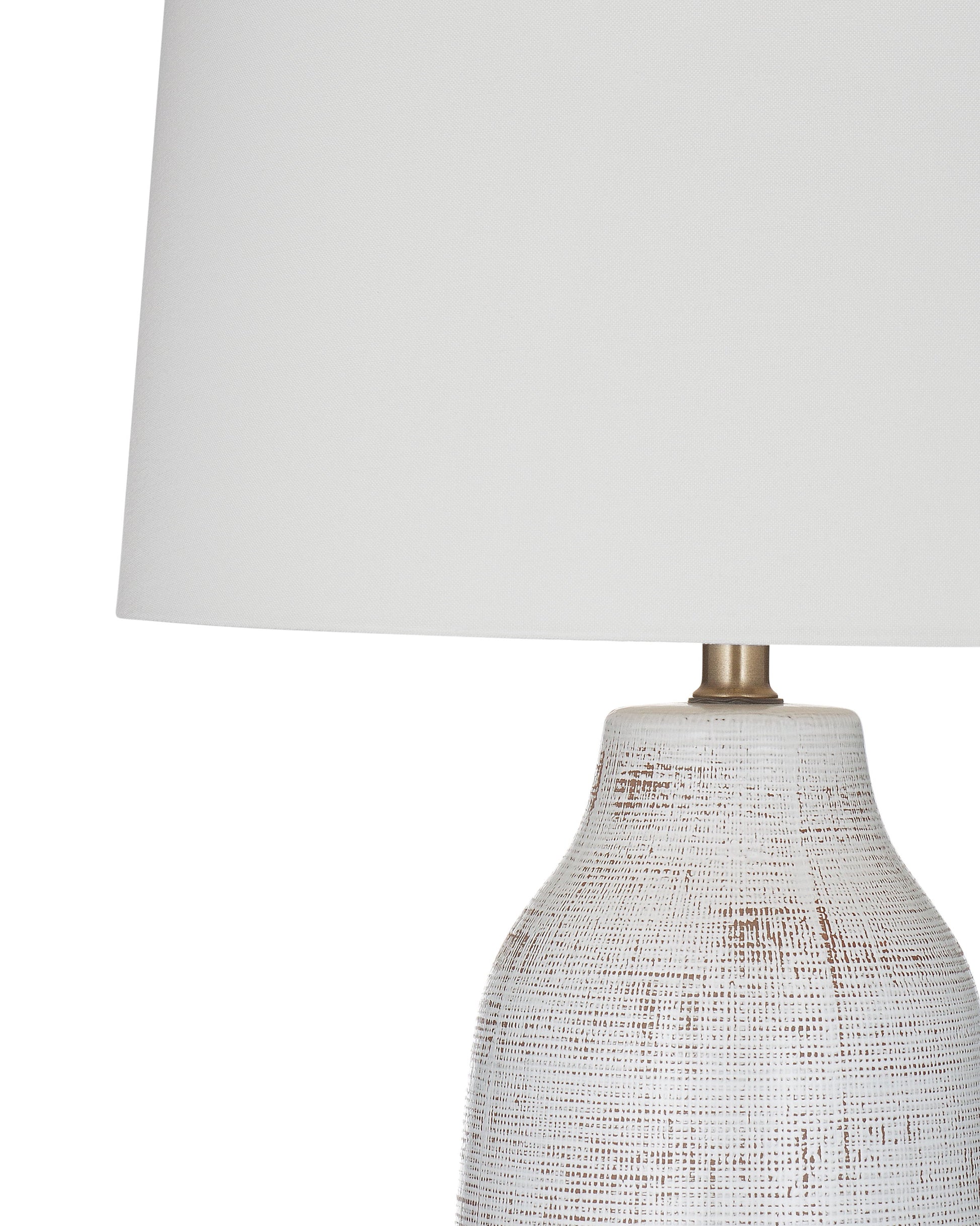 The Forcythia Table Lamp exhibits a contemporary ceramic body with a distinctive crackled glaze finish that adds both texture and visual interest. Its elongated, vase-like shape gives it an air of sophistication, while the neutral color palette allows it to blend into a range of interior styles seamlessly. The lamp is topped with a simple white drum shade, ensuring that it casts a soft, welcoming light, perfect for modern living spaces that require both style and function.
