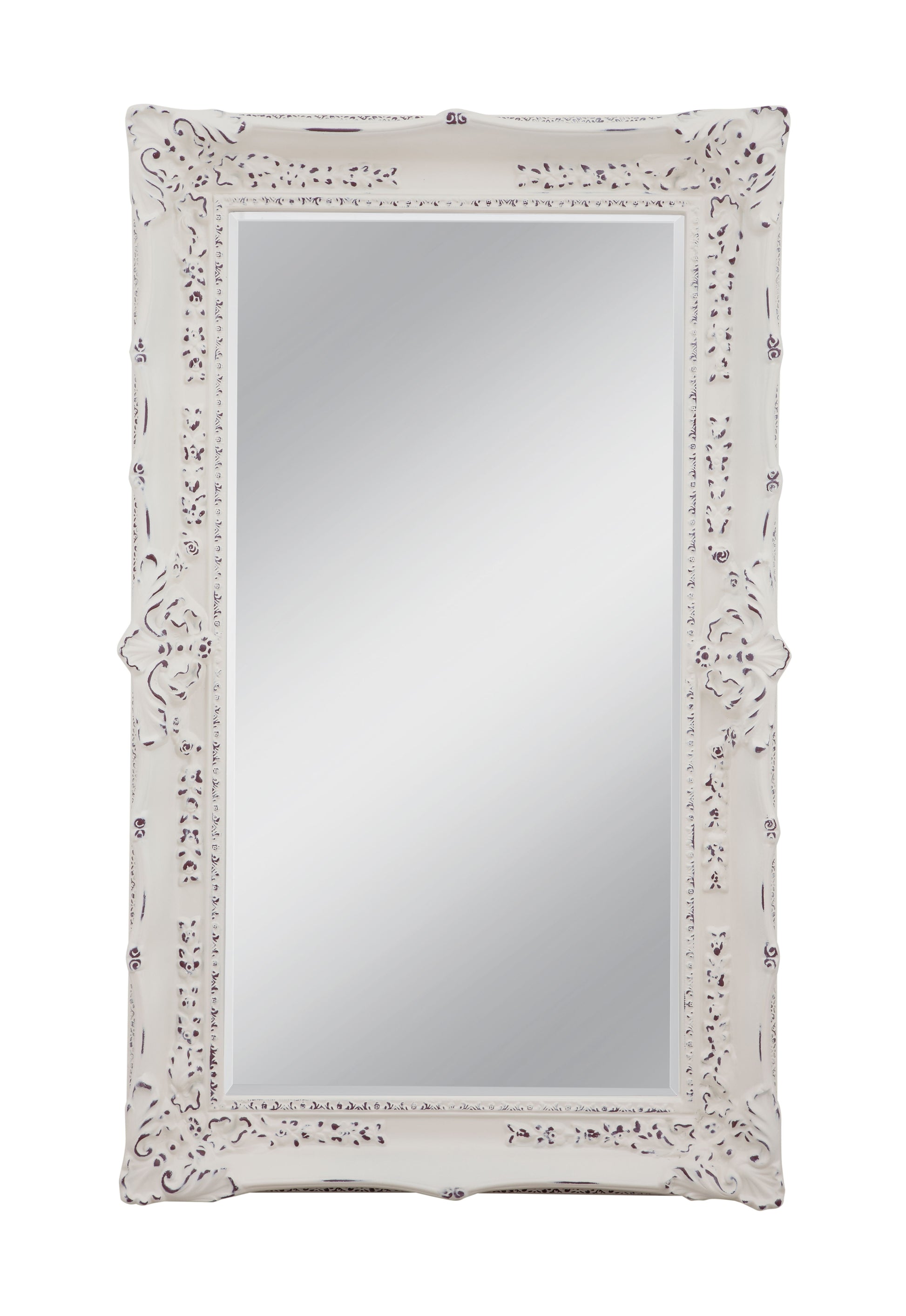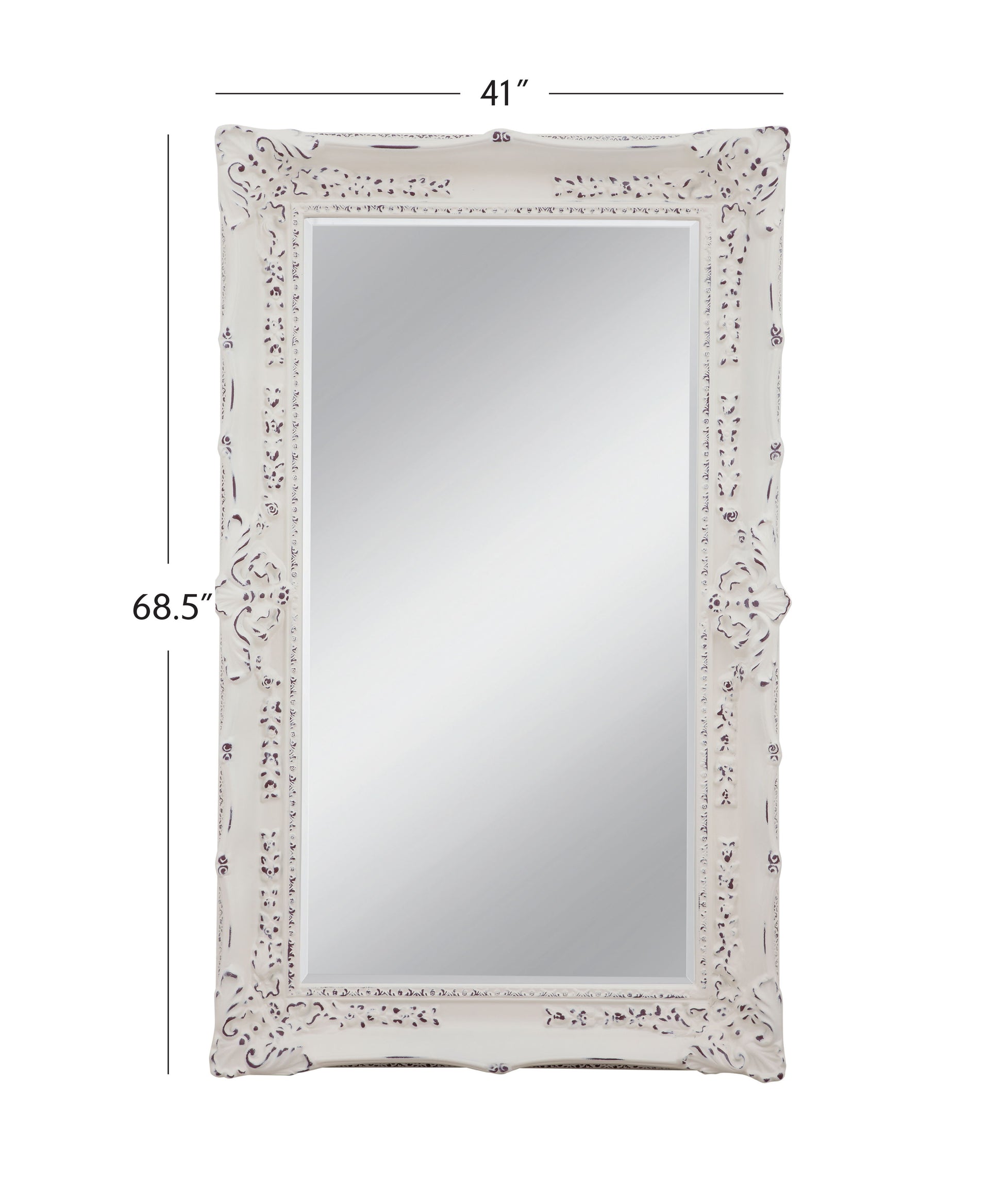 The Garland Wall Mirror embodies timeless elegance with its traditional rectangular design. Crafted from antique white wood, it showcases intricate floral pattern carvings that evoke a vintage charm. Enhanced by a distressed finish, this mirror exudes an antique allure, making it a captivating addition to any space.