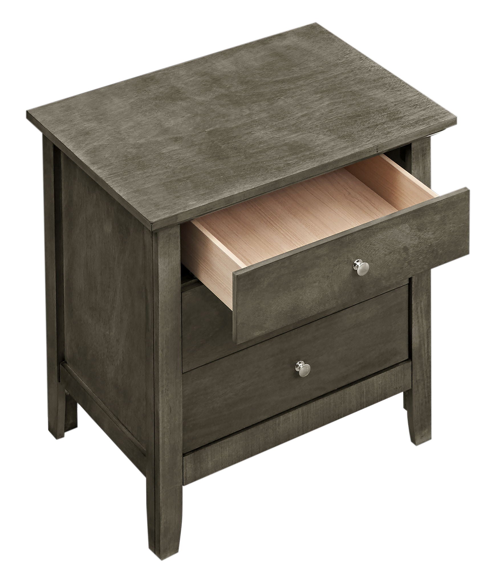 With dimensions of 26" in height, 24" in width, and 18" in depth, this piece fits perfectly in various spaces, making it a versatile choice for both small and large bedrooms. The dove-tailed construction of the drawers not only ensures durability but also allows for smooth operation. Additionally, the stylish nickel hardware complements the overall design, adding a touch of contemporary charm. In conclusion, this nightstand is not just functional but also a key piece that enhances the overall aesthetic of your living space.
