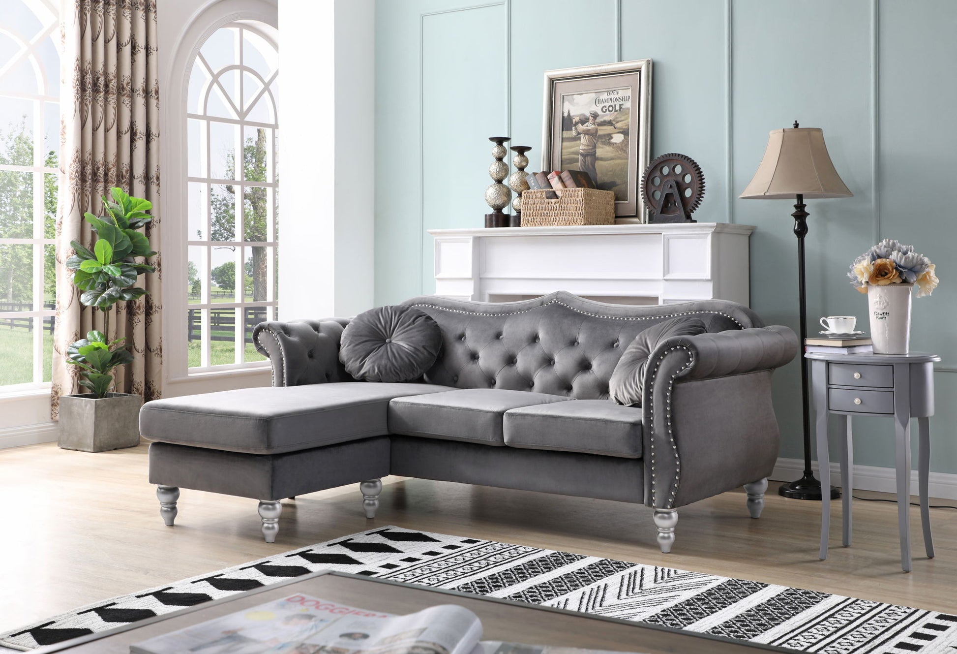 This sofa chaise unites comfort with contemporary design, making it a standout feature in your living space. Wrapped in soft velvet, it includes two matching throw pillows that enhance relaxation and offer extra support for your head and neck during leisure moments. With dimensions of 34"H x 81"W x 35"D, this chaise is adaptable to a variety of room sizes, from apartments to larger homes.