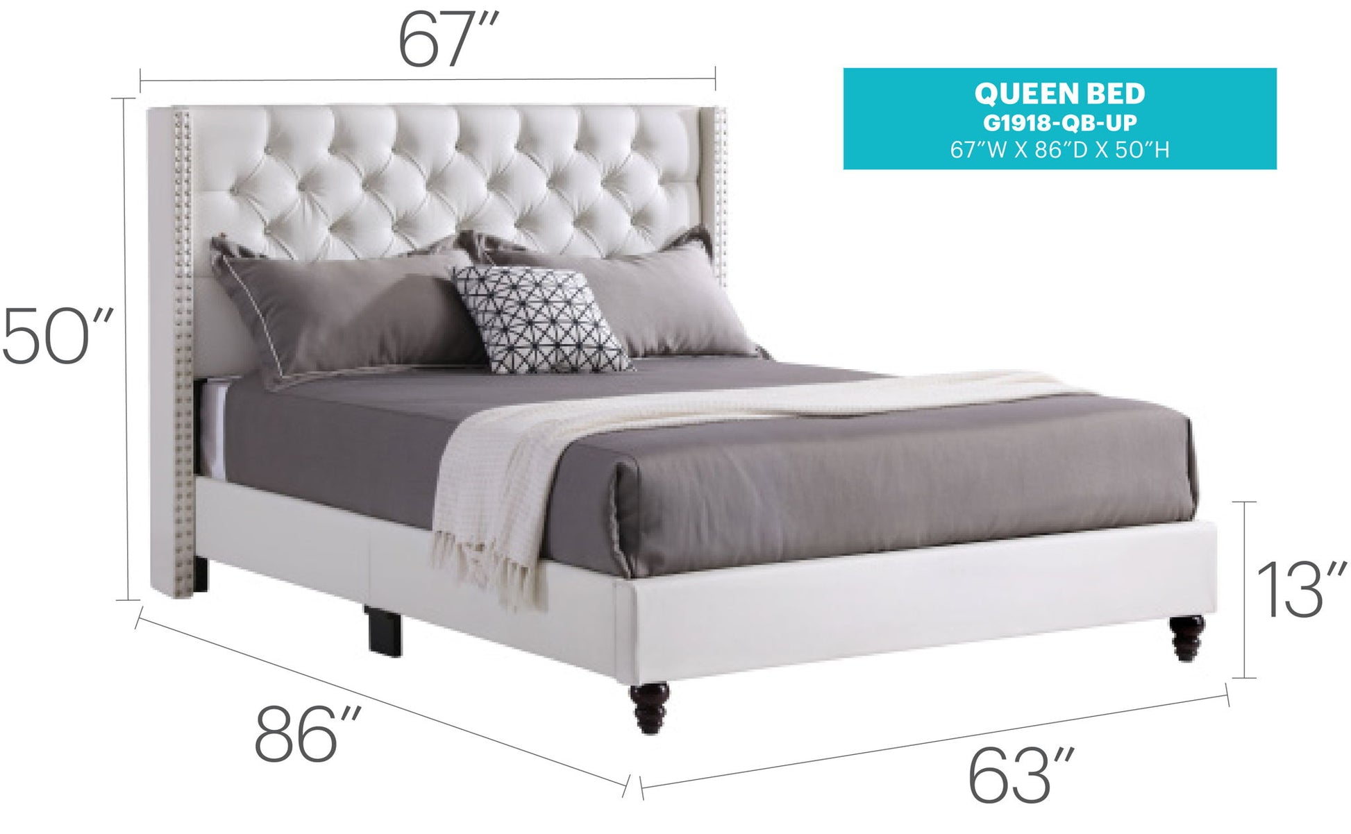 This upholstered bed seamlessly enhances any modern bedroom, combining comfort and contemporary style in one design. The intricately tufted headboard provides a plush support for relaxing while reading or watching television, making it a striking centerpiece in your room. The striking nailhead trim emphasizes the bed's clean lines and overall aesthetic, creating a bold statement that catches the eye.