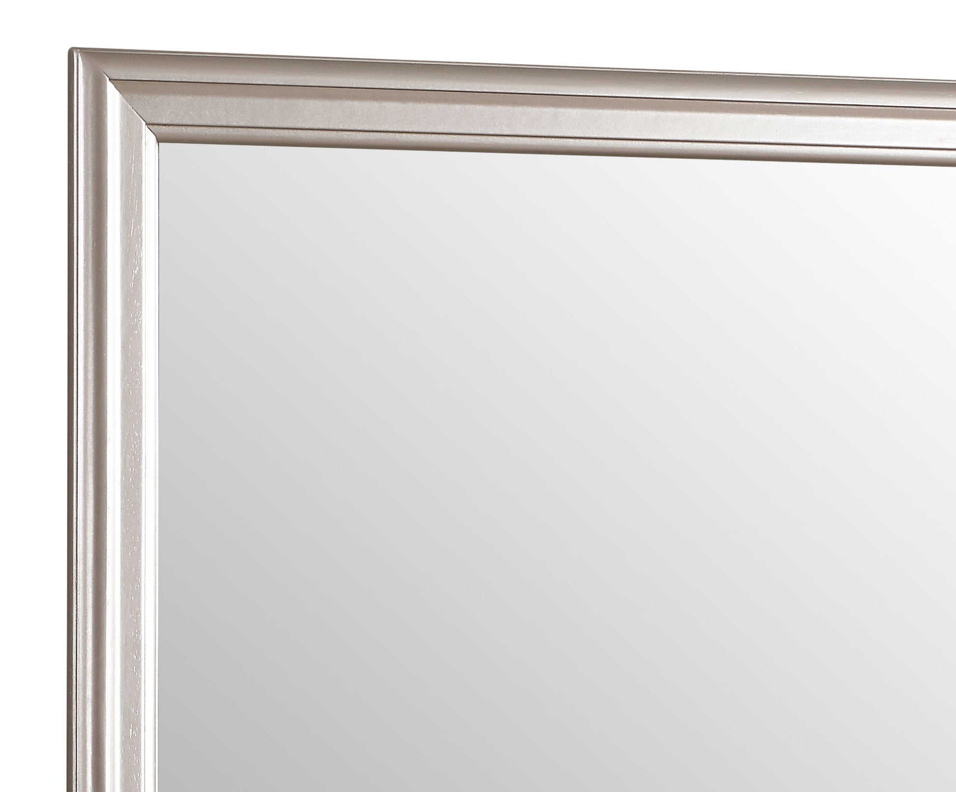 This Metalic mirror from Glory Furniture serves as a striking accent for any room, merging usability and contemporary design. The mirror features low distortion glass, ensuring a clear and accurate reflection, making it essential for your morning routines. Surrounded by a durable wood veneer frame, it not only ensures sturdiness but also adds a touch of warmth to your space.
