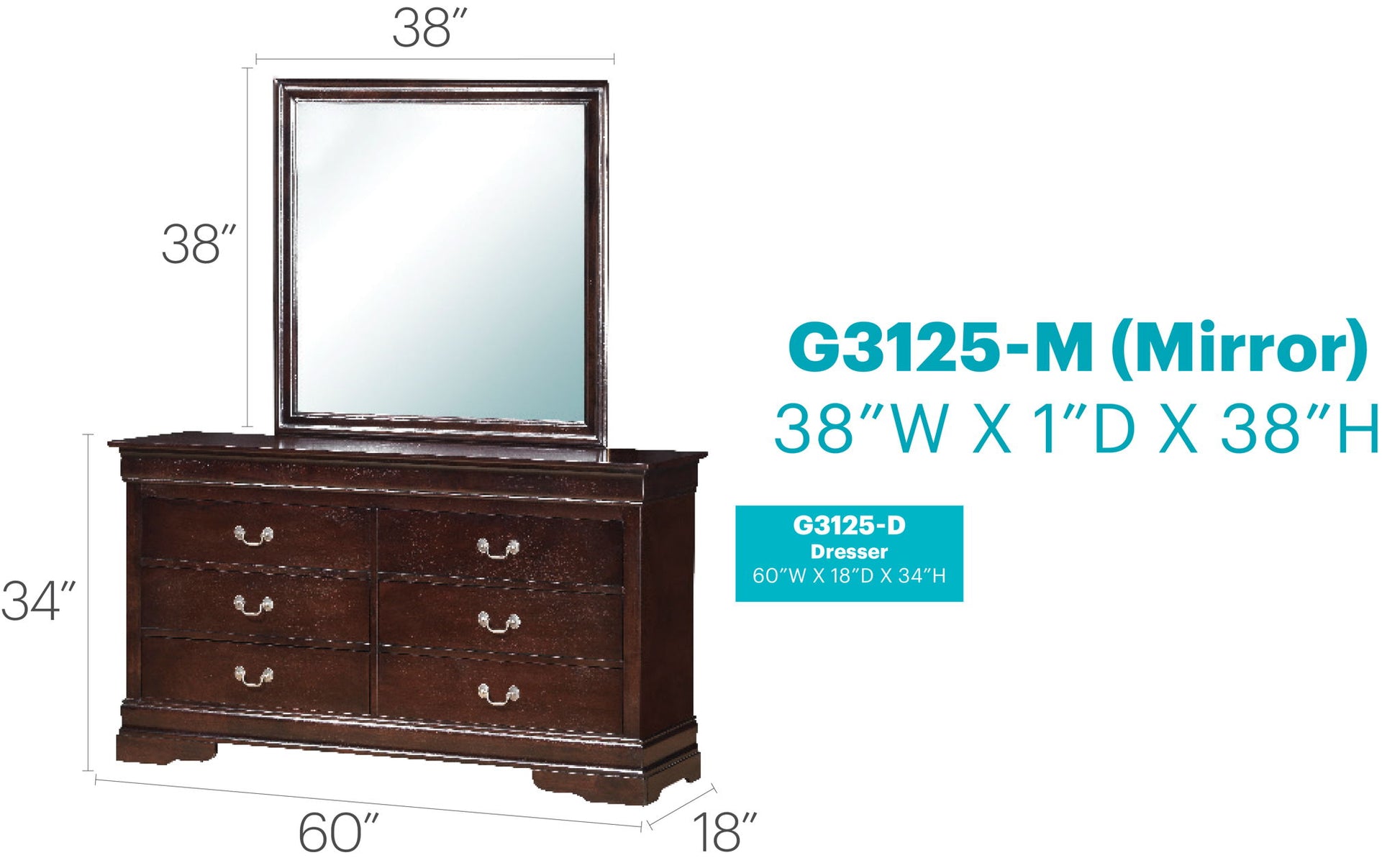 Louis Phillipe - 33" Dresser - Teal