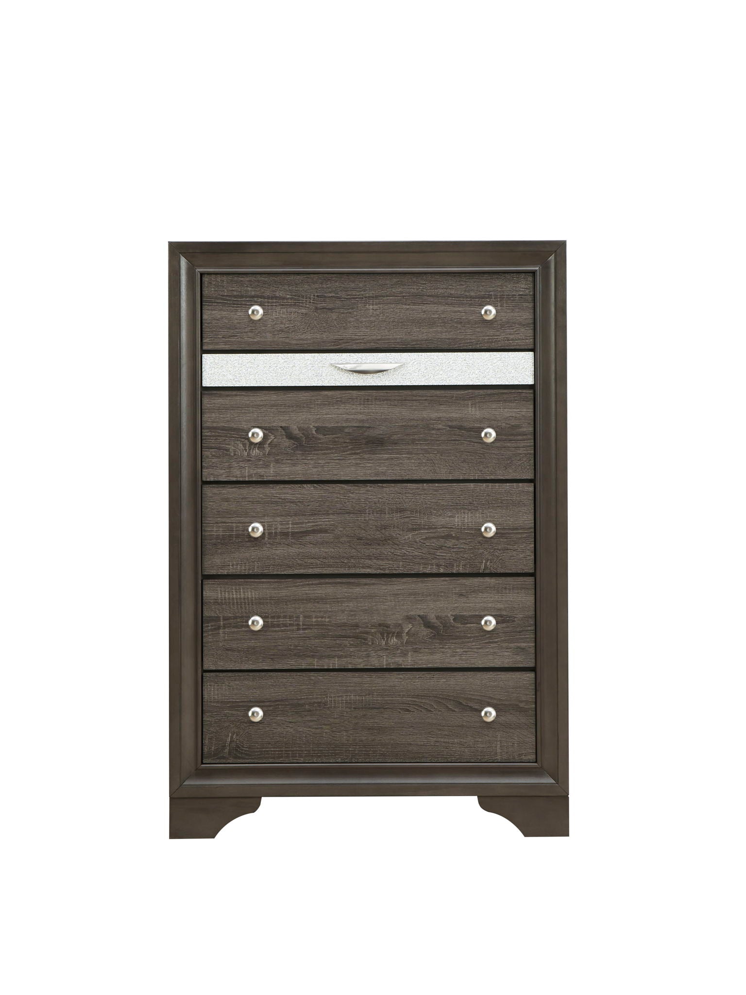 This expertly crafted 6-drawer chest features a modern laminate wood grain finish that enhances any room's decor.