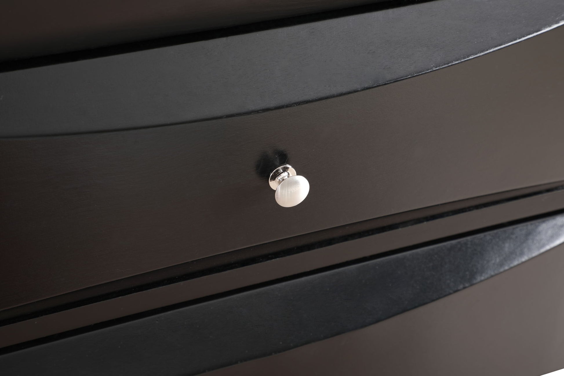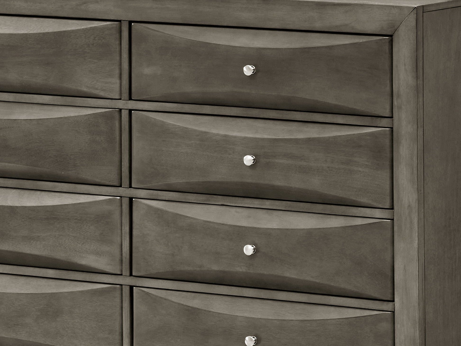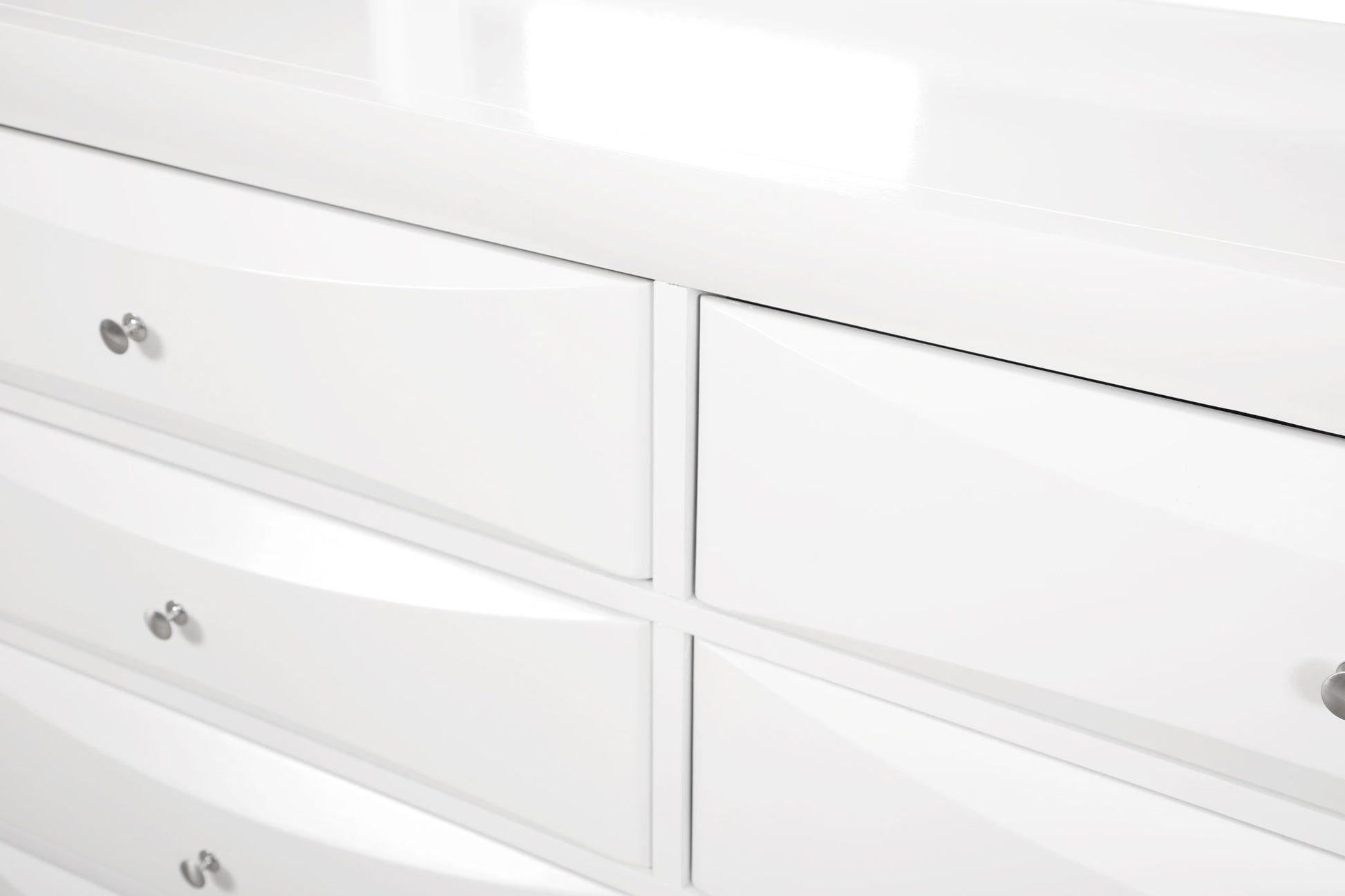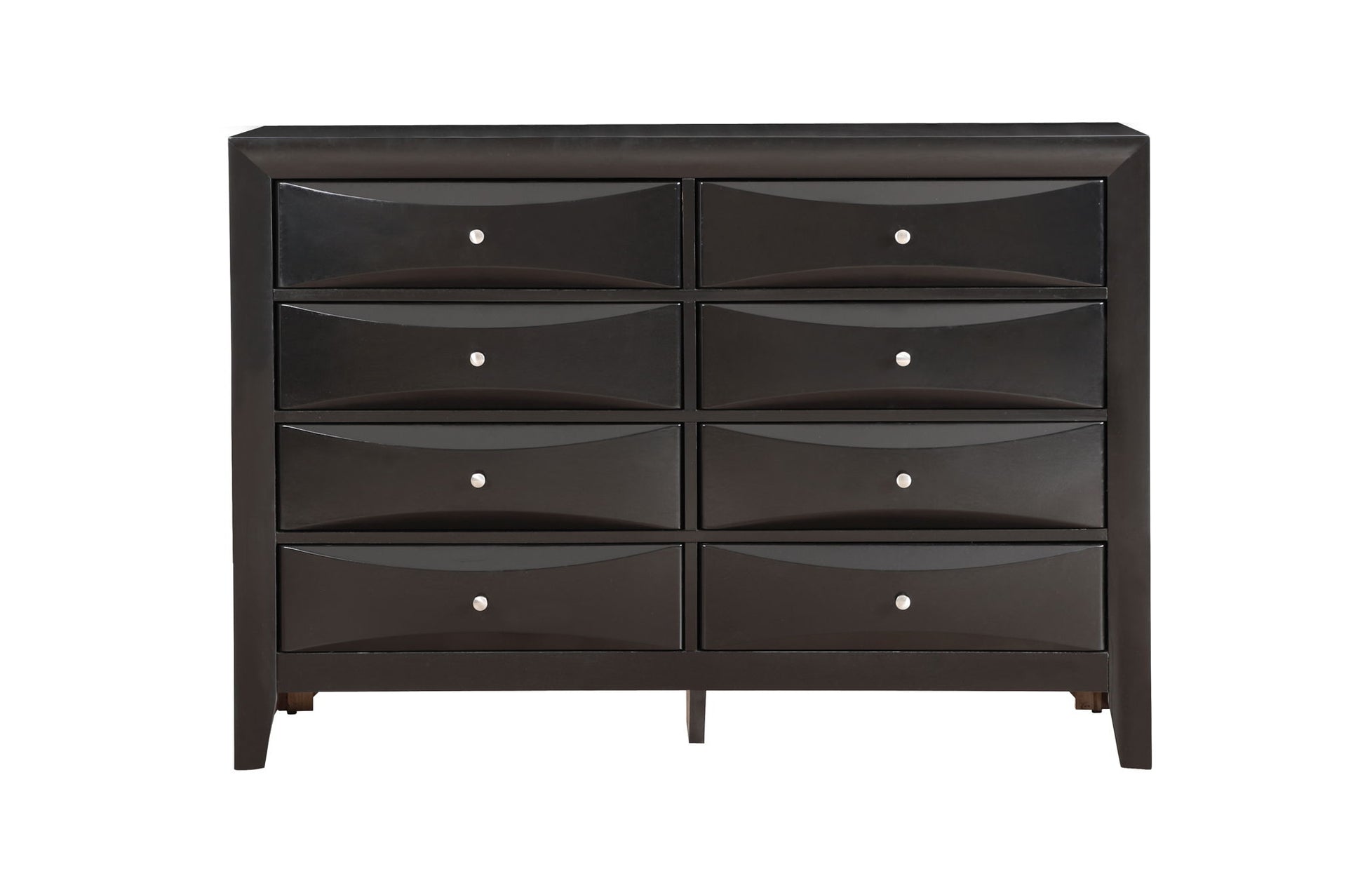 This modern dresser seamlessly combines useful storage and a classic finish, making it a versatile element for your bedroom decor. Emphasizing practicality, the dresser is designed with refined beveled drawer fronts that contribute to its smooth, streamlined aesthetic. The primary materials consist of high-quality wood veneers, ensuring a strong construction that is built to withstand daily use over the years. The sleek silhouette enhances the overall ambiance of your space, promoting an organized and serene environment.