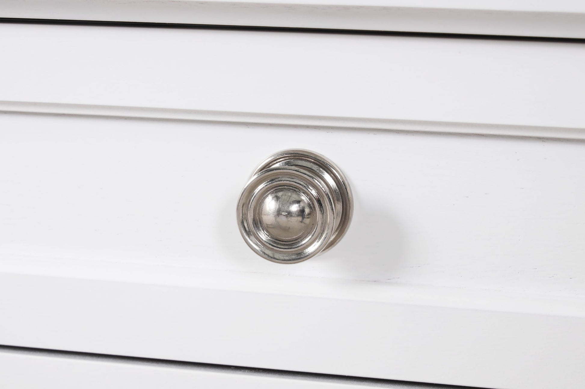 This chest is also distinguished by its dovetail joints, which provide enhanced strength and stability for consistent performance over the years. Additionally, the felt-lined top drawer is particularly effective for safely storing delicate or valuable items, emphasizing the thoughtful design that characterizes this elegant storage solution.