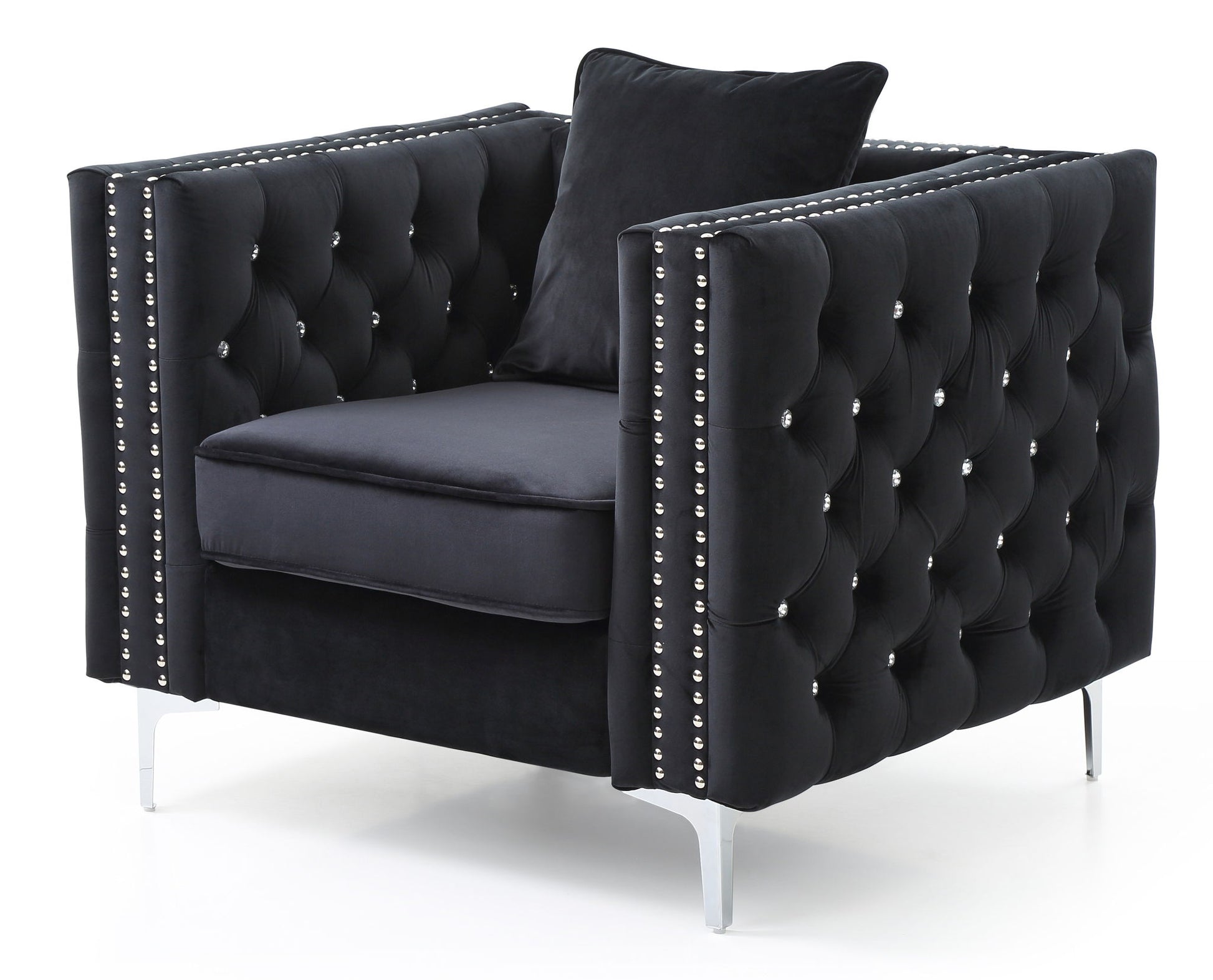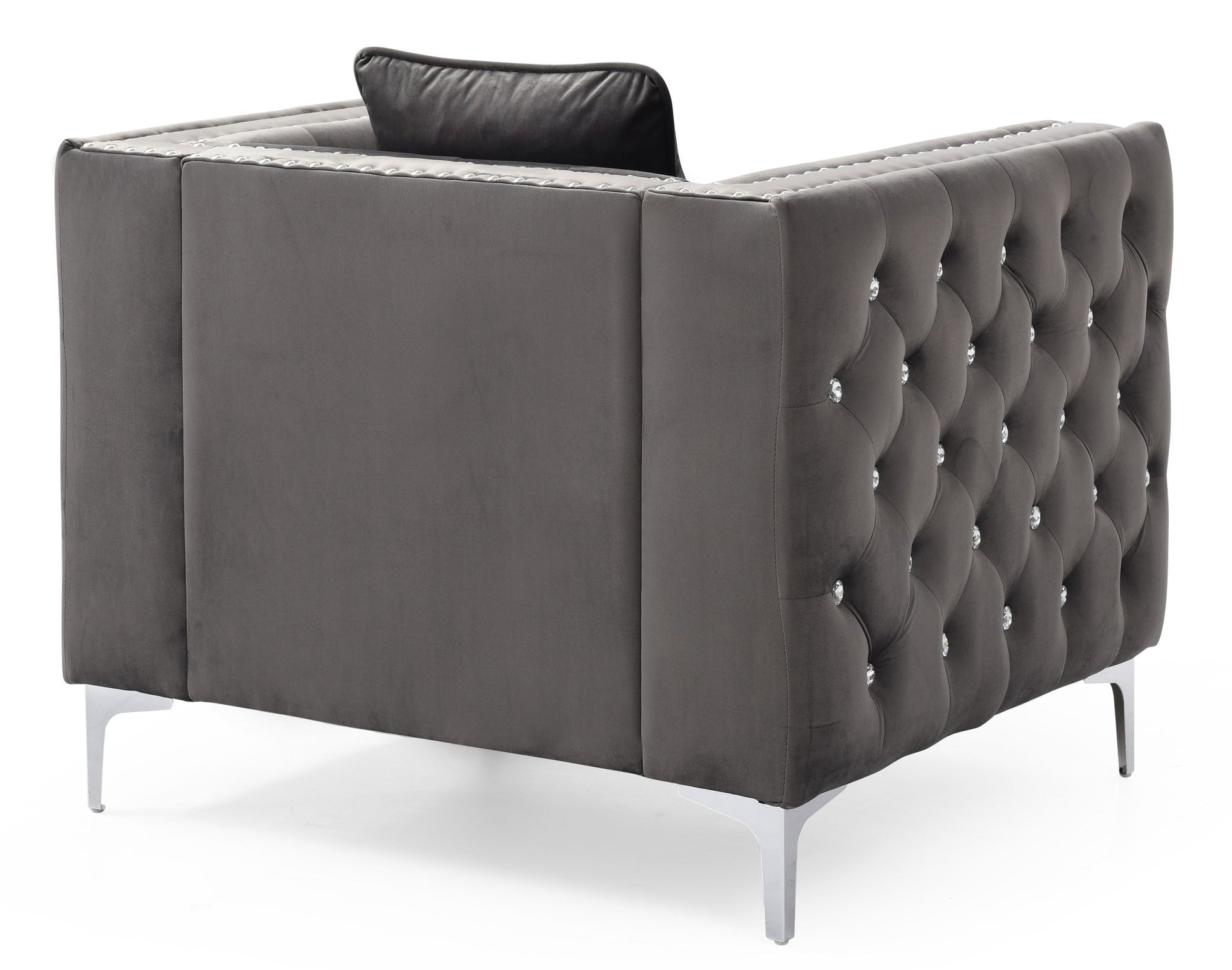 Constructed from soft velvet, it features a stunning tufted design enhanced by faux diamond buttons that create an eye-catching effect while ensuring comfort during use. This design detail not only adds visual interest but also makes the chair stand out in your home.
