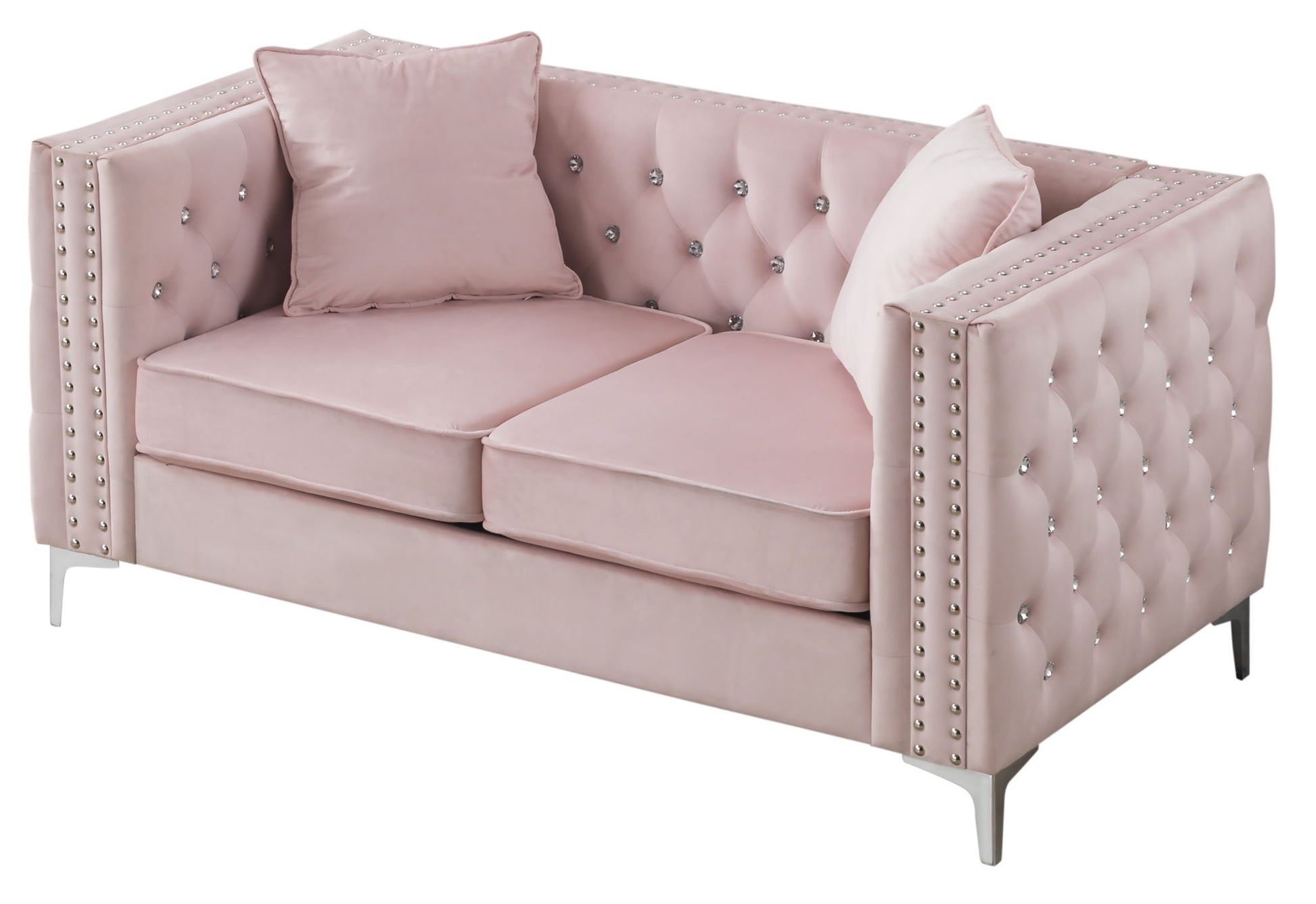This stunning piece features a tufted design adorned with faux diamond buttons, providing a modern twist that elevates your decor. Crafted from premium velvet material, the loveseat combines style and comfort, inviting you to relax and unwind. Its plush fabric and stylish silhouette make it an attractive yet functional choice for family gatherings and social events.