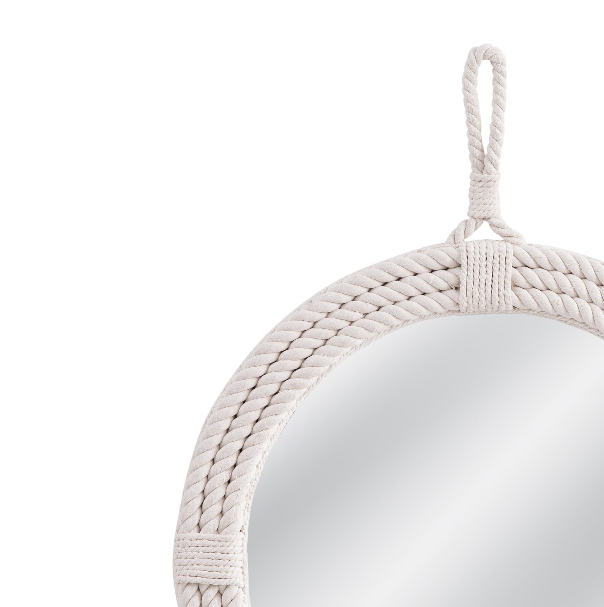 The Guedry Wall Mirror features a contemporary coastal design with subtle white top detailing that adds a fresh, airy touch to any space. Its round shape creates a soft, inviting look, perfect for enhancing a variety of interiors. This mirror blends modern simplicity with coastal charm, making it a versatile piece that complements both casual and refined decor styles. The Guedry Wall Mirror brings a light, sophisticated feel to your home, reflecting both style and functionality.