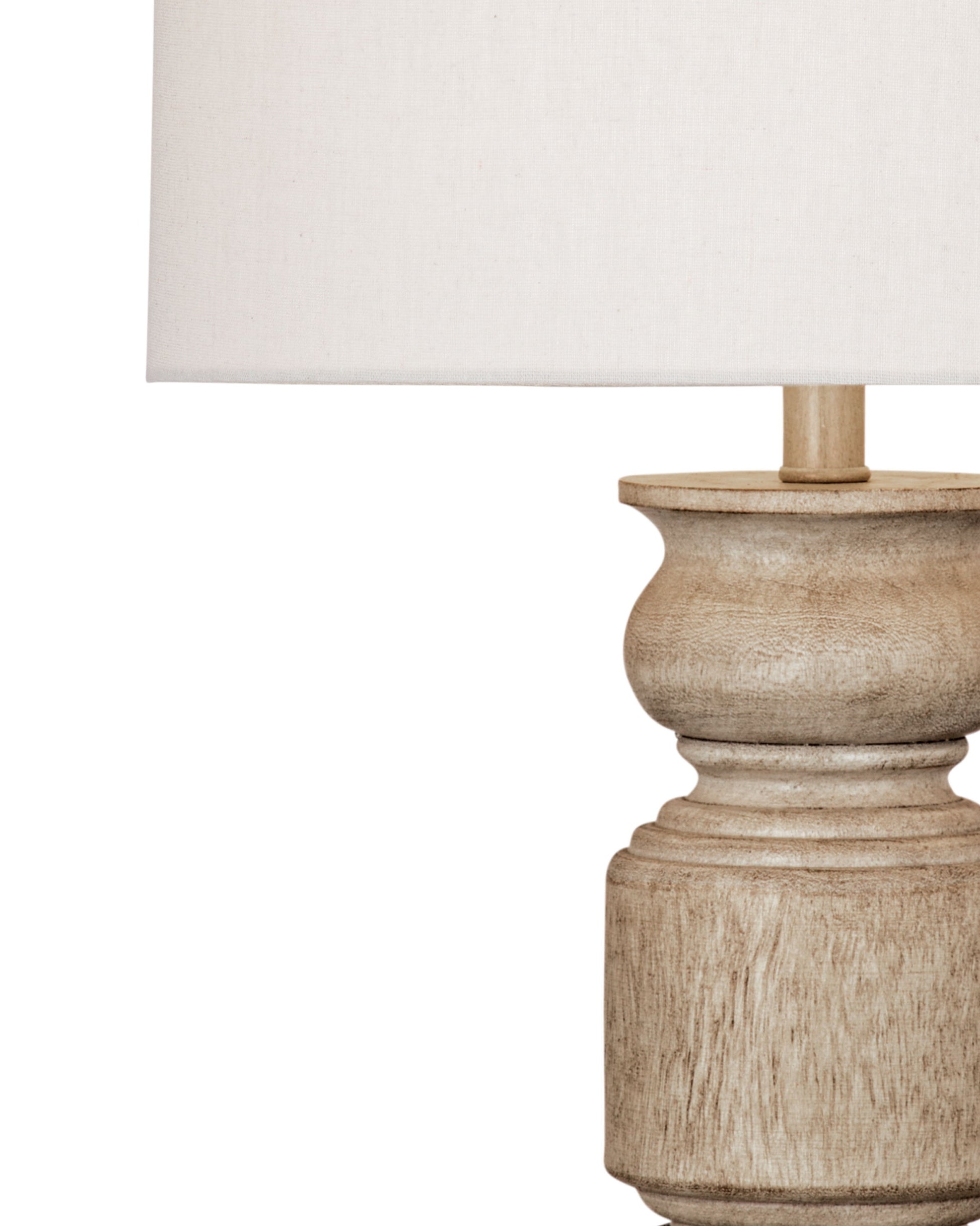The Helford Table Lamp combines modern and traditional design with its intricately carved wood base, adding texture and elegance to any room. The clean lines and detailed craftsmanship of the base are beautifully complemented by a simple drum-style shade, which softens the light and creates a warm, inviting ambiance. This versatile lamp fits seamlessly into various interior styles, offering both style and functionality. The Helford Table Lamp is an ideal choice for adding a refined touch to your space while providing practical lighting.
