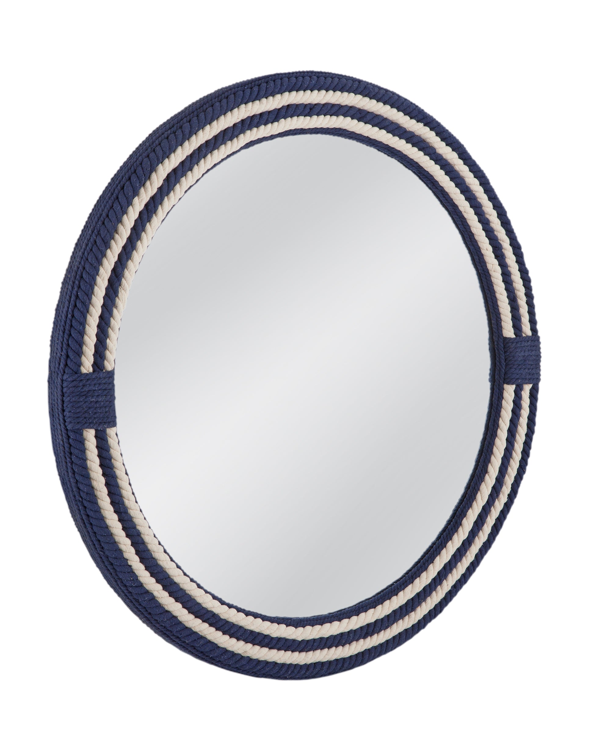The Helm Wall Mirror brings a touch of coastal charm to your home with its round design and woven rope frame in a soothing blue and white combination. Perfect for those seeking a boho-inspired addition to their space, this mirror effortlessly enhances the ambiance with its relaxed yet stylish vibe.