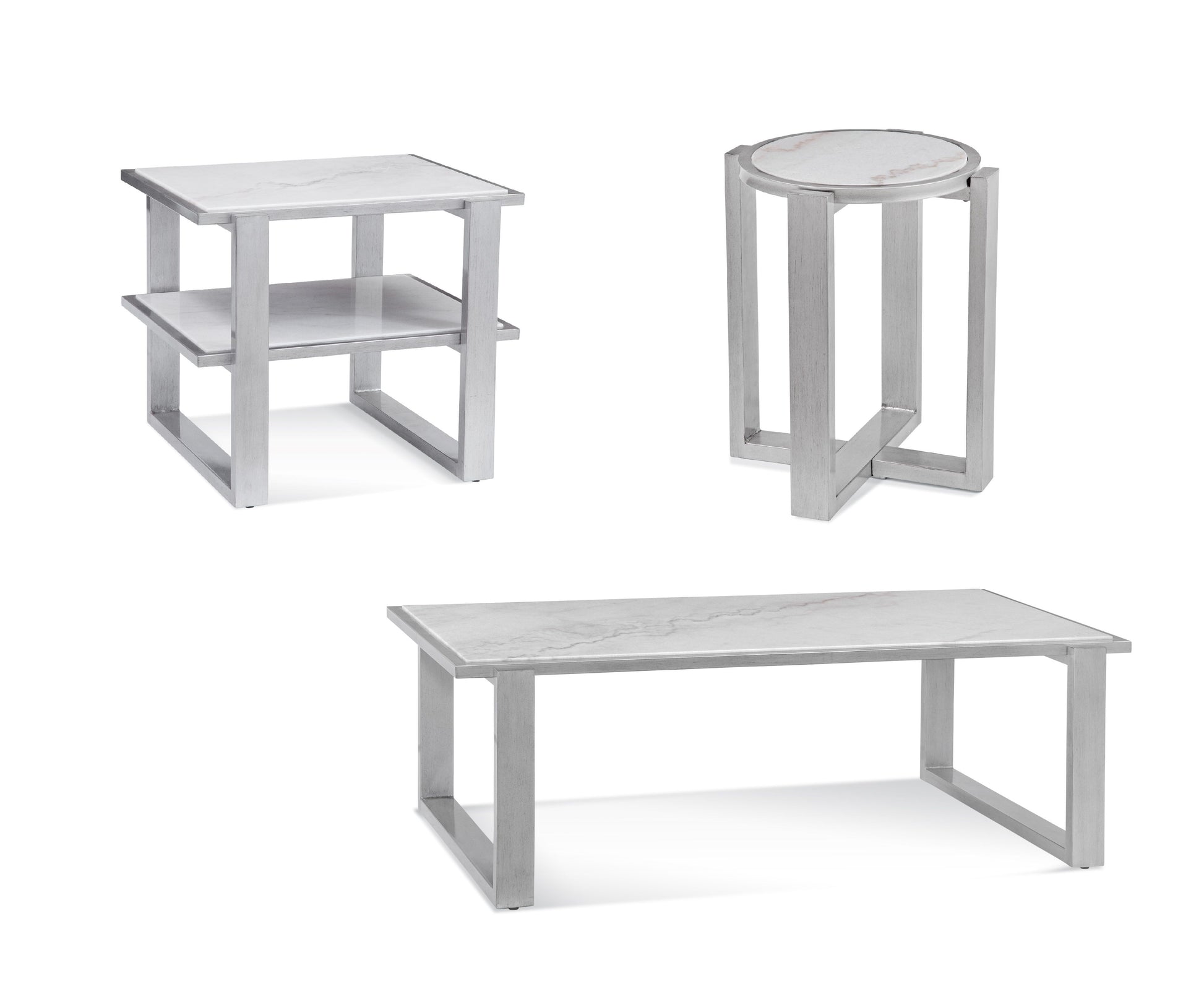 - Geometric, clean lines and light cool finishes give the Hessle End Table a clean, contemporary style