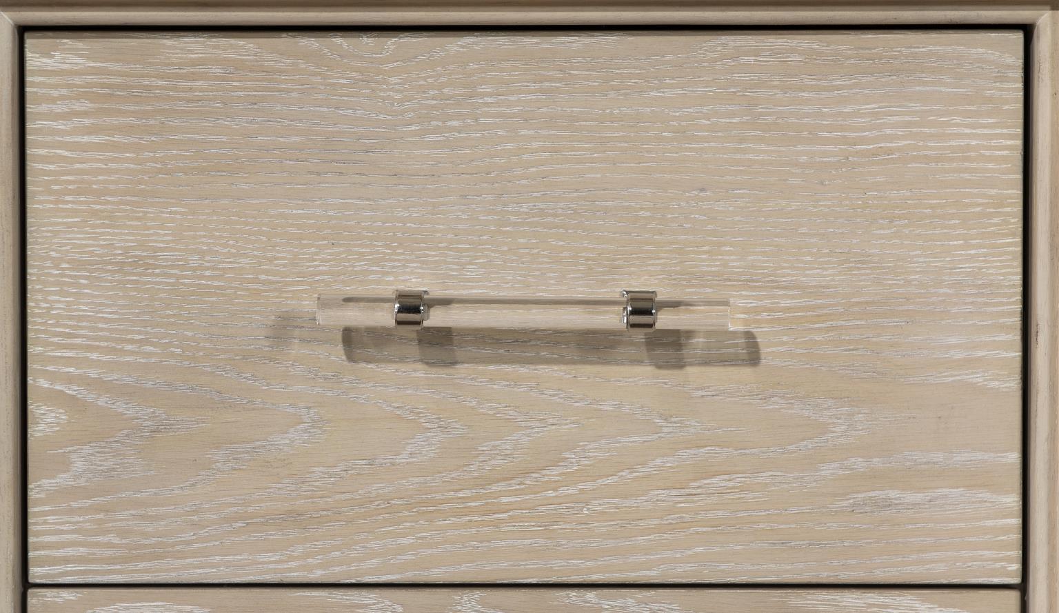 Discover the perfect blend of casual contemporary style and timeless elegance with the 5032 Horizons bedroom collection. The soft taupe finish creates a calming,, inviting ambiance,, while the rich oak veneer and select hardwood solids offer lasting beauty and warmth. Acrylic hardware with nickel accents adds a modern touch,, complemented by fluted resin pilasters that add dimension and depth. Crafted with care,, this collection features French dovetail drawer construction for durability,, and cedar-lined bottom drawers to keep your cherished belongings safe. Smooth ball-bearing metal side glides ensure effortless functionality. Available in twin,, full,, queen,, and king sizes,, the 5032 Horizons bedroom collection invites you to create a peaceful sanctuary that blends sophistication with comfort. Transform your bedroom into a place of serene elegance where every detail exudes style and grace.