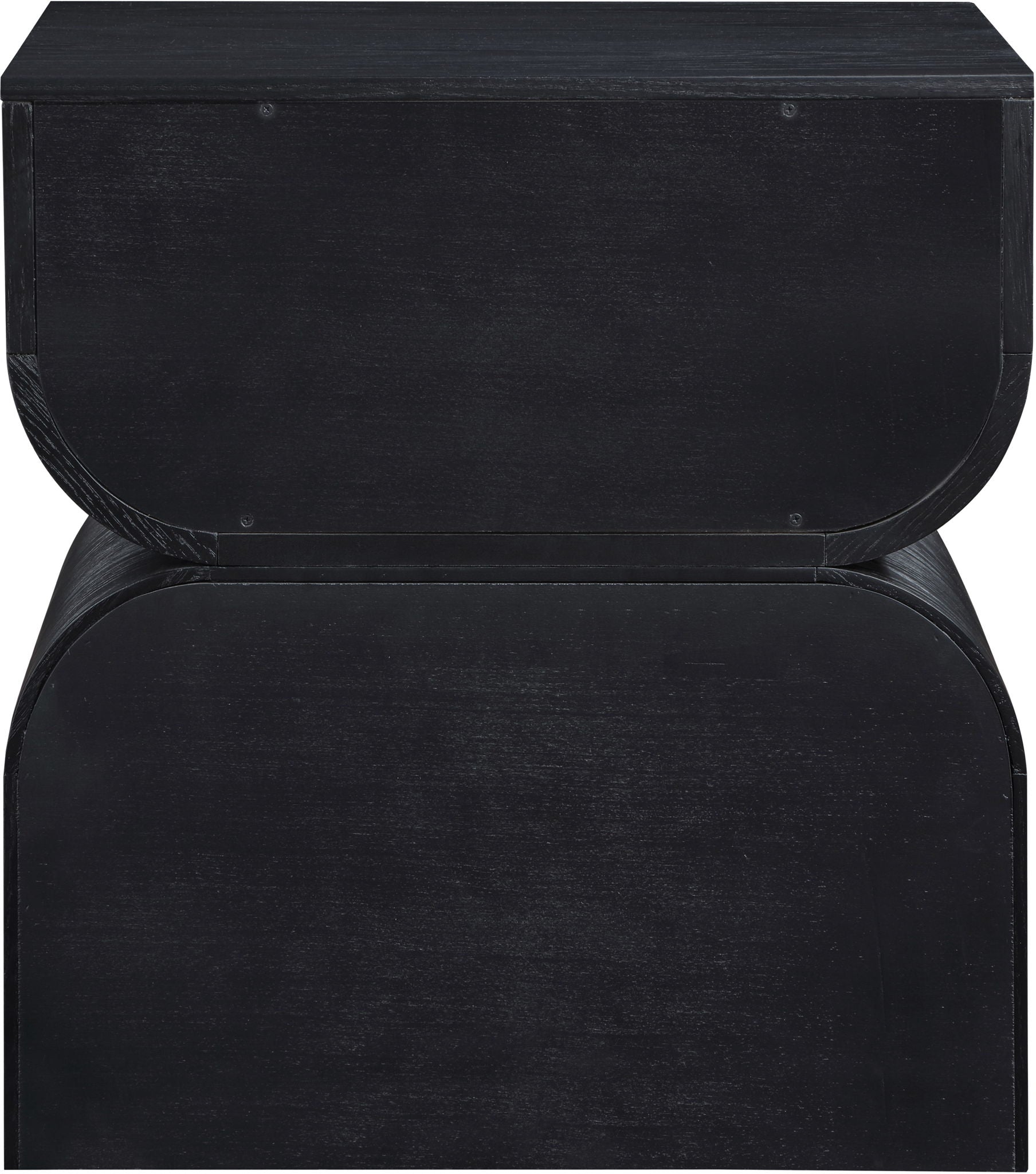 In the realm of modern design, the Jace oak veneer nightstand strikes as a captivating masterpiece. Its sleek lines and curved silhouette create a captivating interplay of light and shadow. The spacious drawer provides ample storage for your essentials, such as adding a basket to put underneath for books and other small items. The unique design adds a touch of personality to your bedroom.