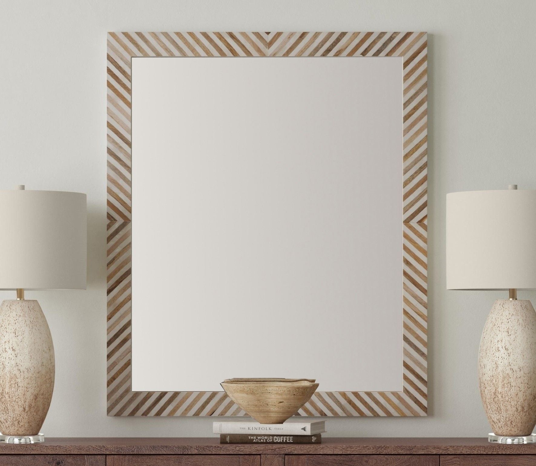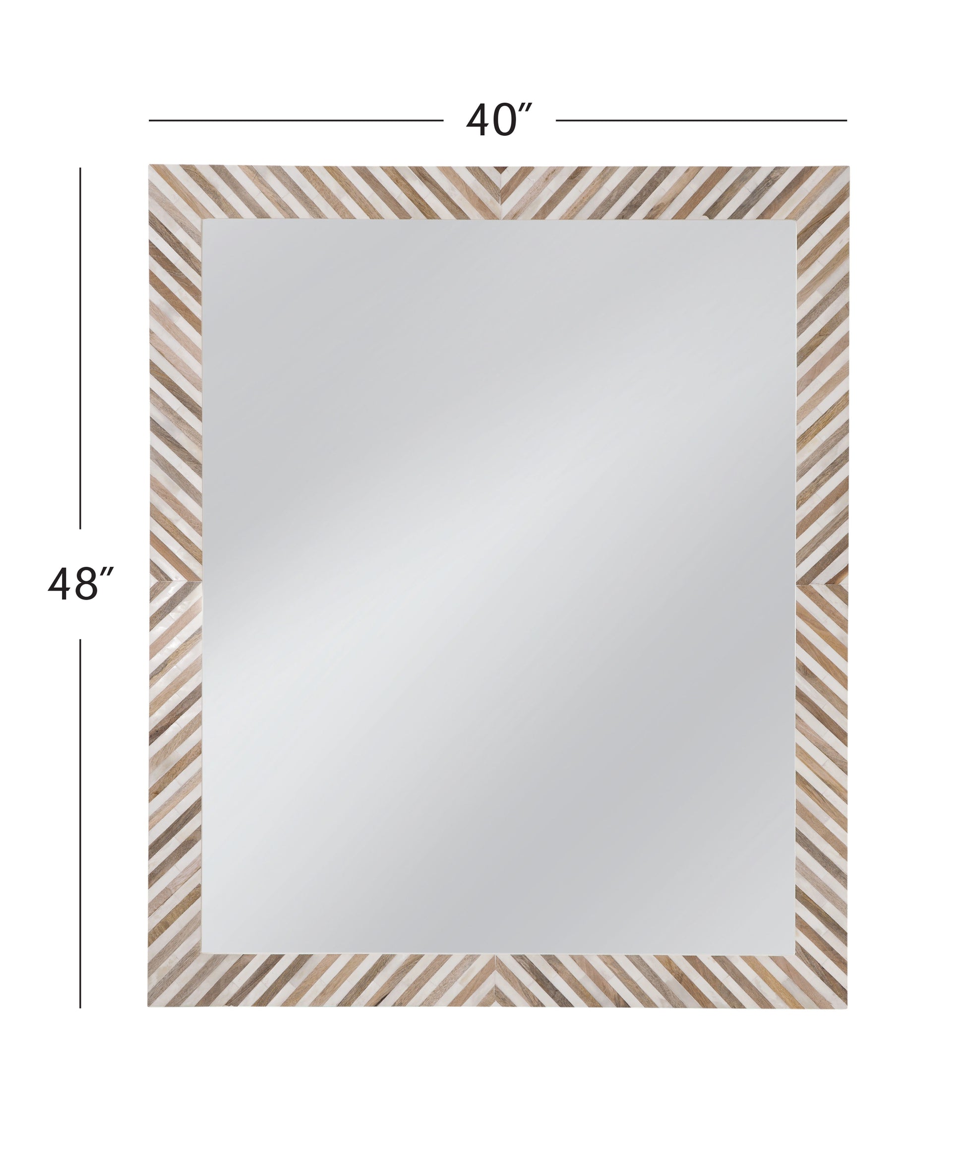 The Karl Wall Mirror features a stunning cream and natural wood and resin herringbone pattern frame, bringing a perfect blend of boho design with coastal aesthetics to any room. The intricate pattern adds texture and visual interest, making it a striking focal point in your space. Ideal for living rooms, bedrooms, or entryways, this mirror brings a relaxed, earthy feel that complements a variety of interior styles. With its combination of natural materials and thoughtful design, the Karl Wall Mirror enhances your home with both style and warmth.