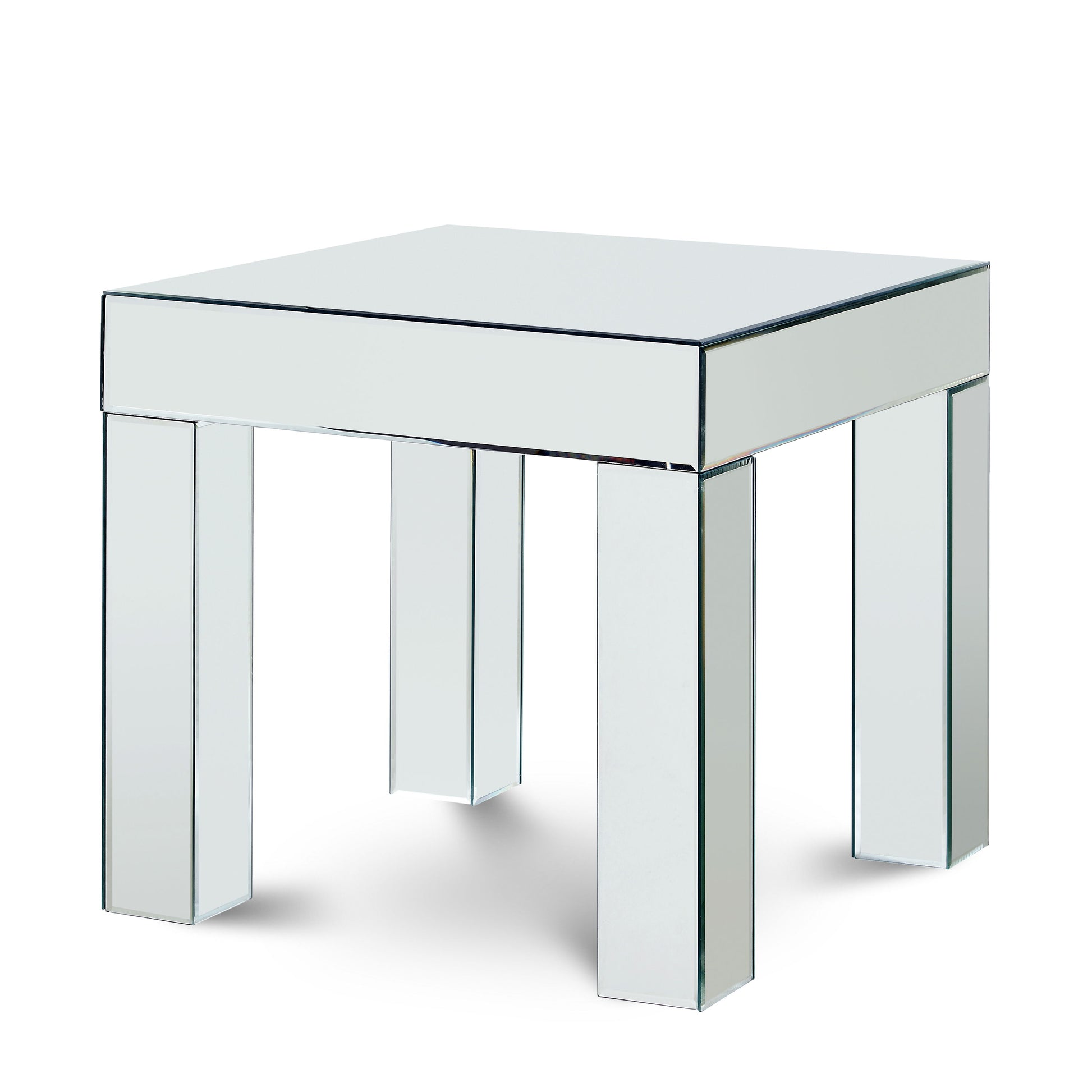 Let this Lainy mirrored end table become a focal point in your living room or den. This handsome table features a boxy design with rectangular lines and a modish look with a bold geometric slant that is nothing short of striking. Each surface of the table is covered in mirrors for a contemporary feel. Buy it on its own, or buy the entire Lainy collection for a cohesive look.