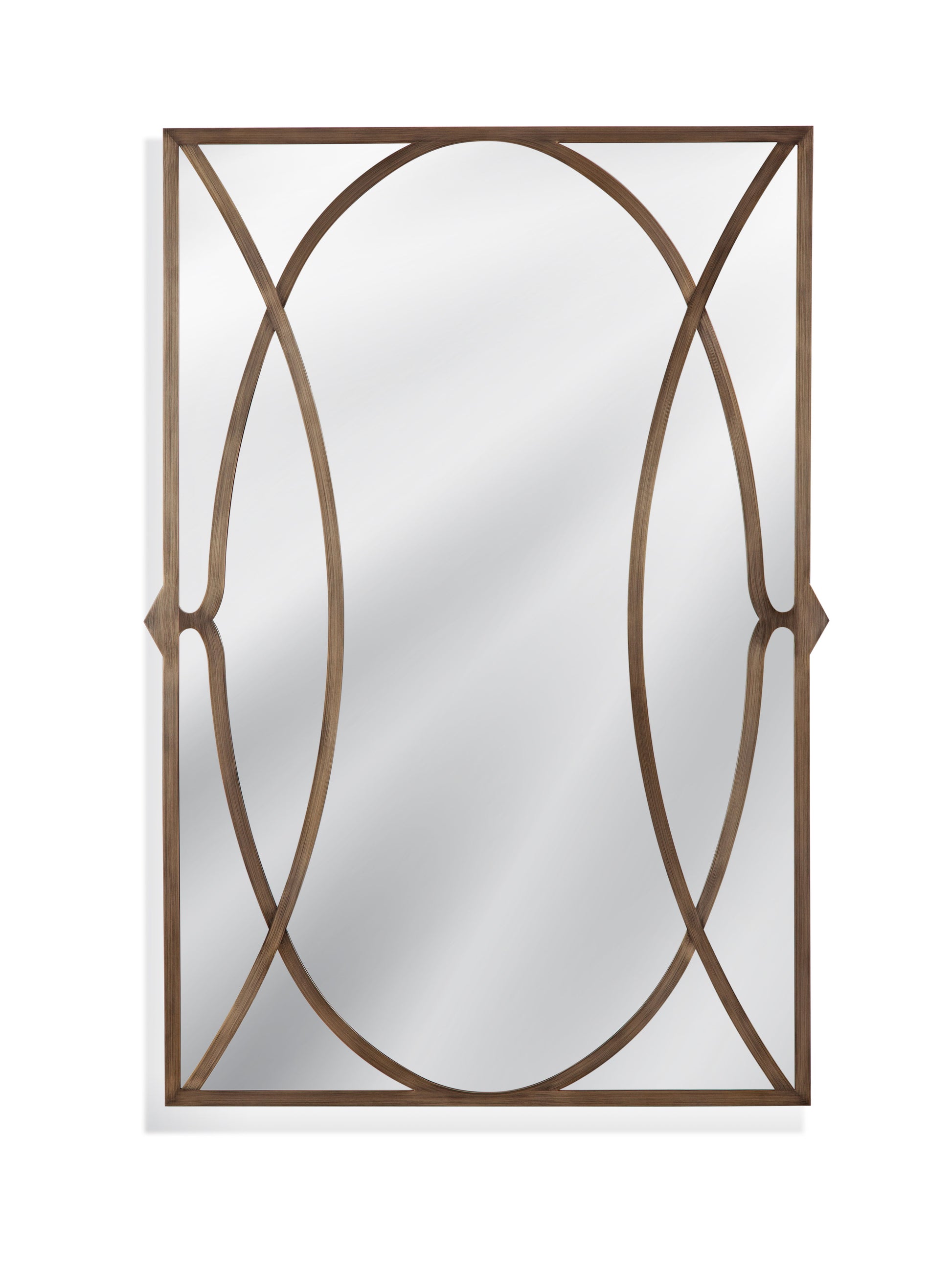 The Lattice Wall Mirror boasts a rectangular shape with an interlocking circle pattern, framed in bronze-finished metal, seamlessly blending modern and traditional aesthetics.Crafted with attention to detail, this mirror effortlessly merges modern and traditional styles, adding a timeless elegance to any room. Elevate your decor effortlessly with the stylish and versatile Lattice Wall Mirror.