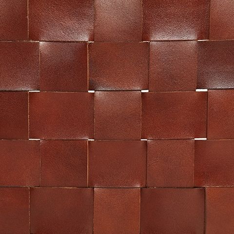 - Upholstered in brown leather woven strips