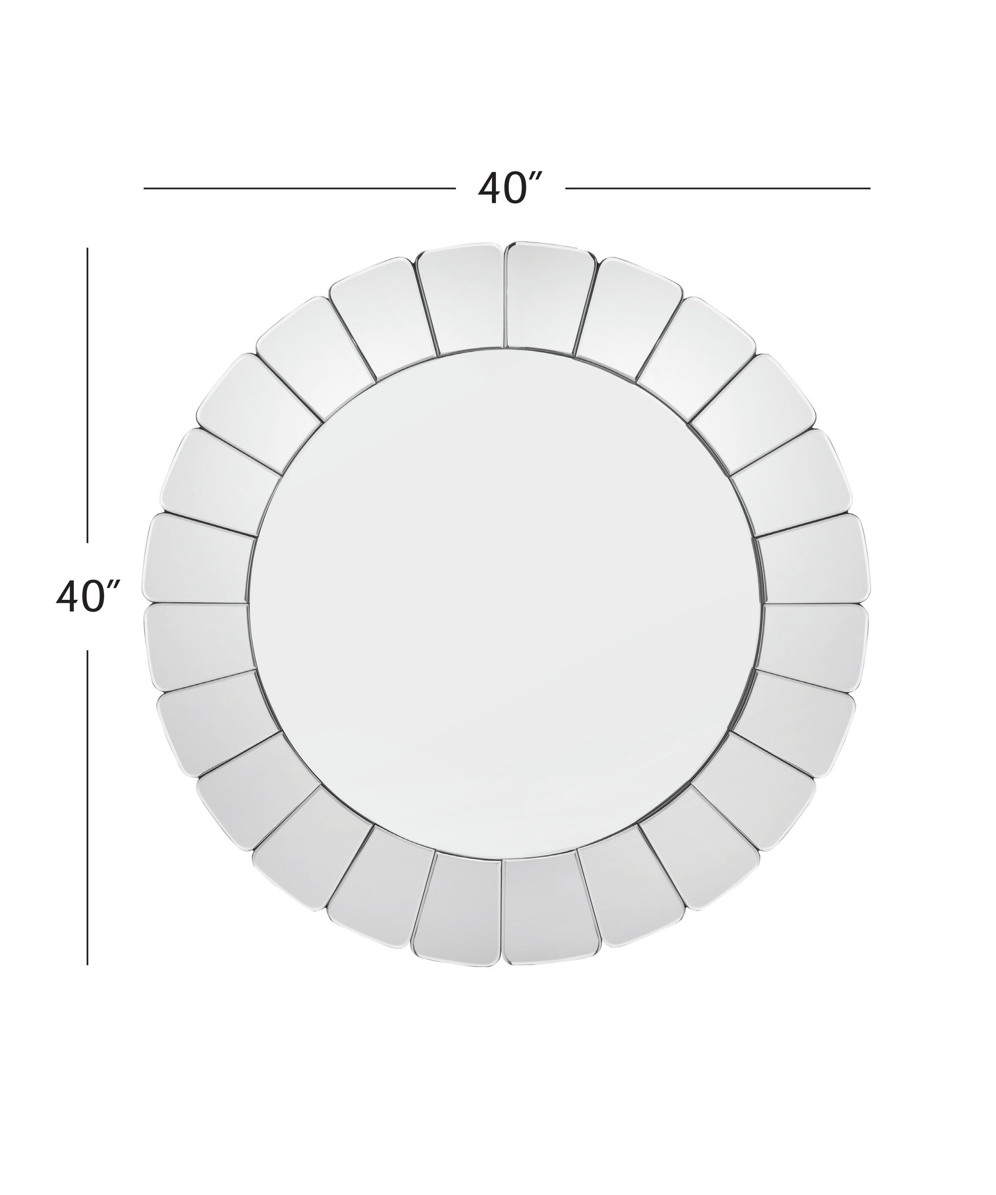 The Leona Wall Mirror presents a round traditional design infused with glamorous flair, making it a stunning focal point in any room. Its raised mirrored frame detailing adds a touch of sophistication and elegance to your space, elevating the overall ambiance. Crafted with meticulous attention to detail, this mirror exudes timeless charm and character, blending seamlessly with various decor styles.